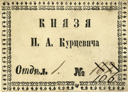 Nelinurkses ornamenteeritud raamistuses: КНЯЗЯ / П.А. Курцевичa / Отдѣл. №