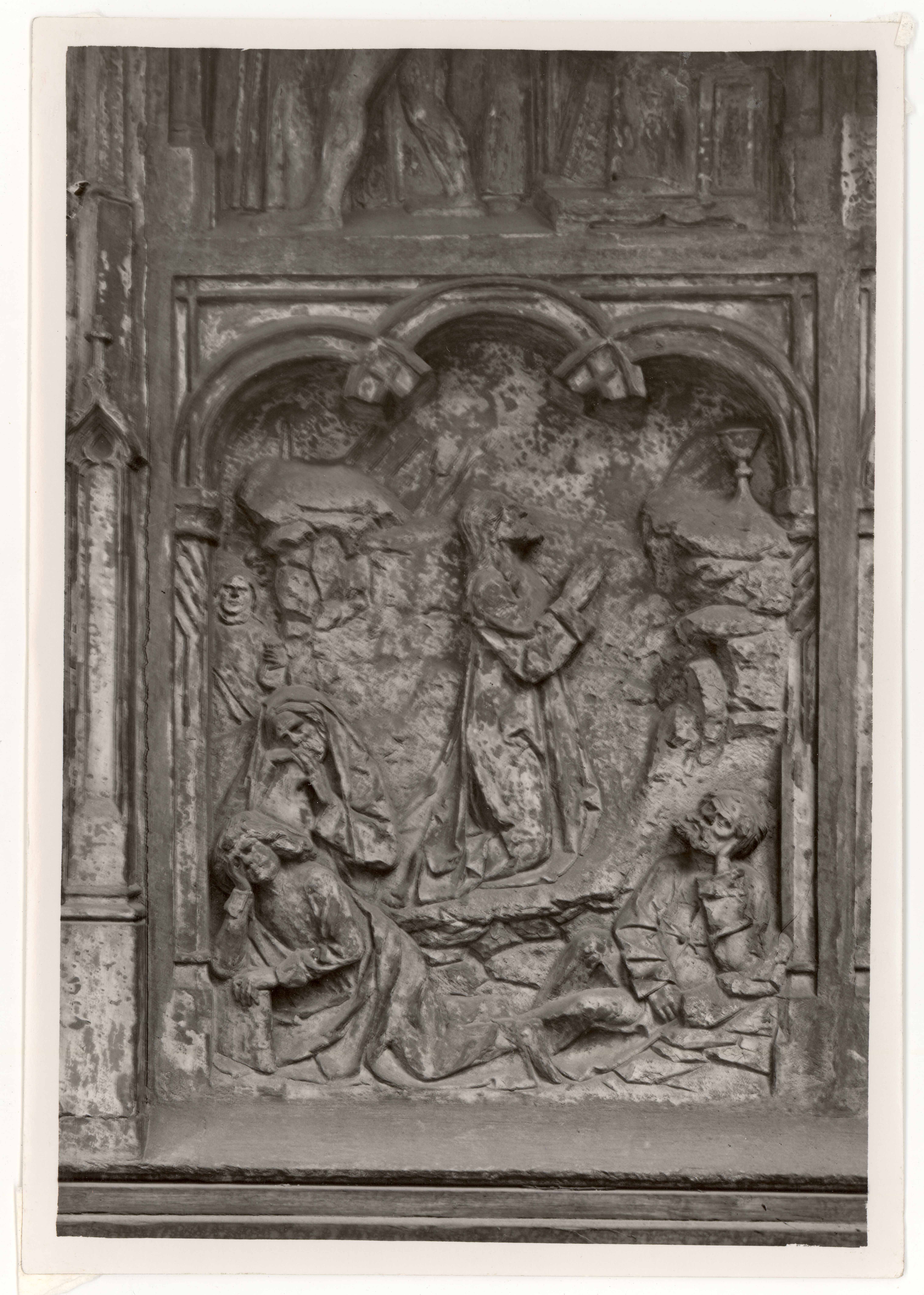 Tallinn. All-linn. Oleviste kirik. Rejeef Hans Pawelsi kenotaafilt Maarja kabeli välisseinal. Kristus Õlimäel. Hinrik Byldensnyder. 1513-1516.a.