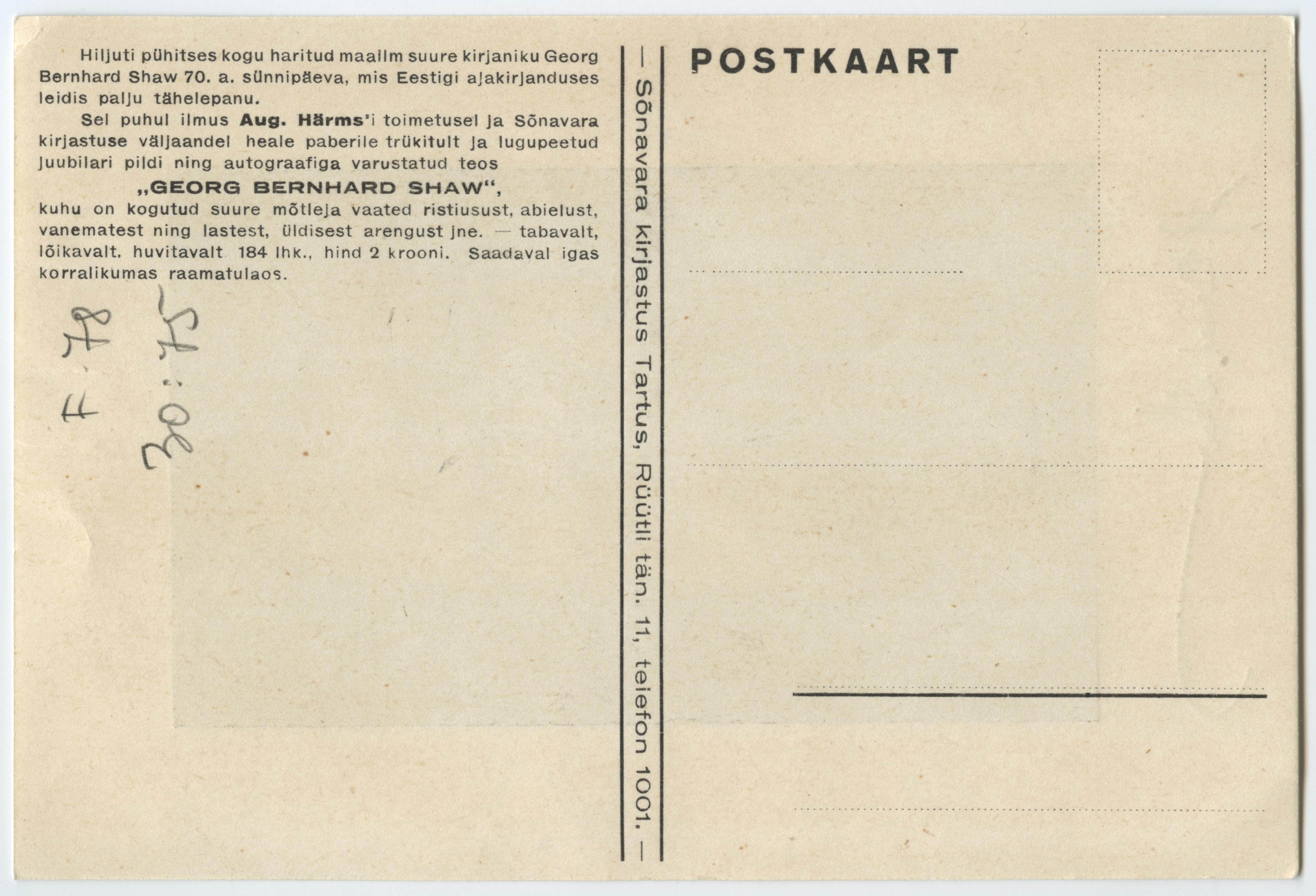 Shaw, George Bernard. Rindportree autogrammiga. Vanas eas