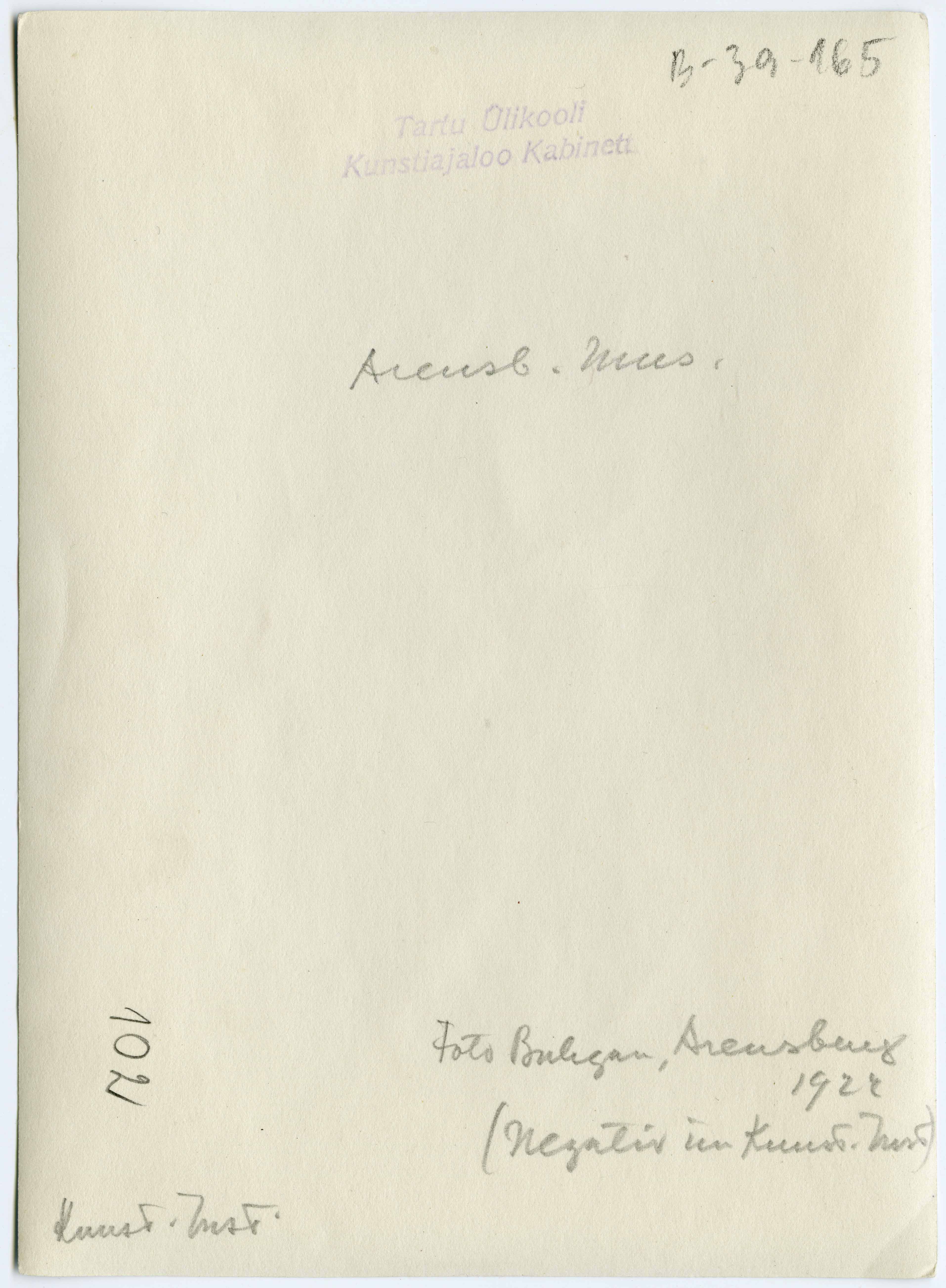 Tekst foto tagaküljel: Arensb. Mus. Foto Buhgan, Arensburg 1922 (Negativ im Kunst Inst). Kunst. Inst. Tempel: Kabinett