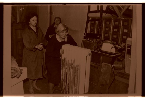 Tartu ülikooli ajaloo muuseumi töötajad muuseumis restaureerimistööde ajal