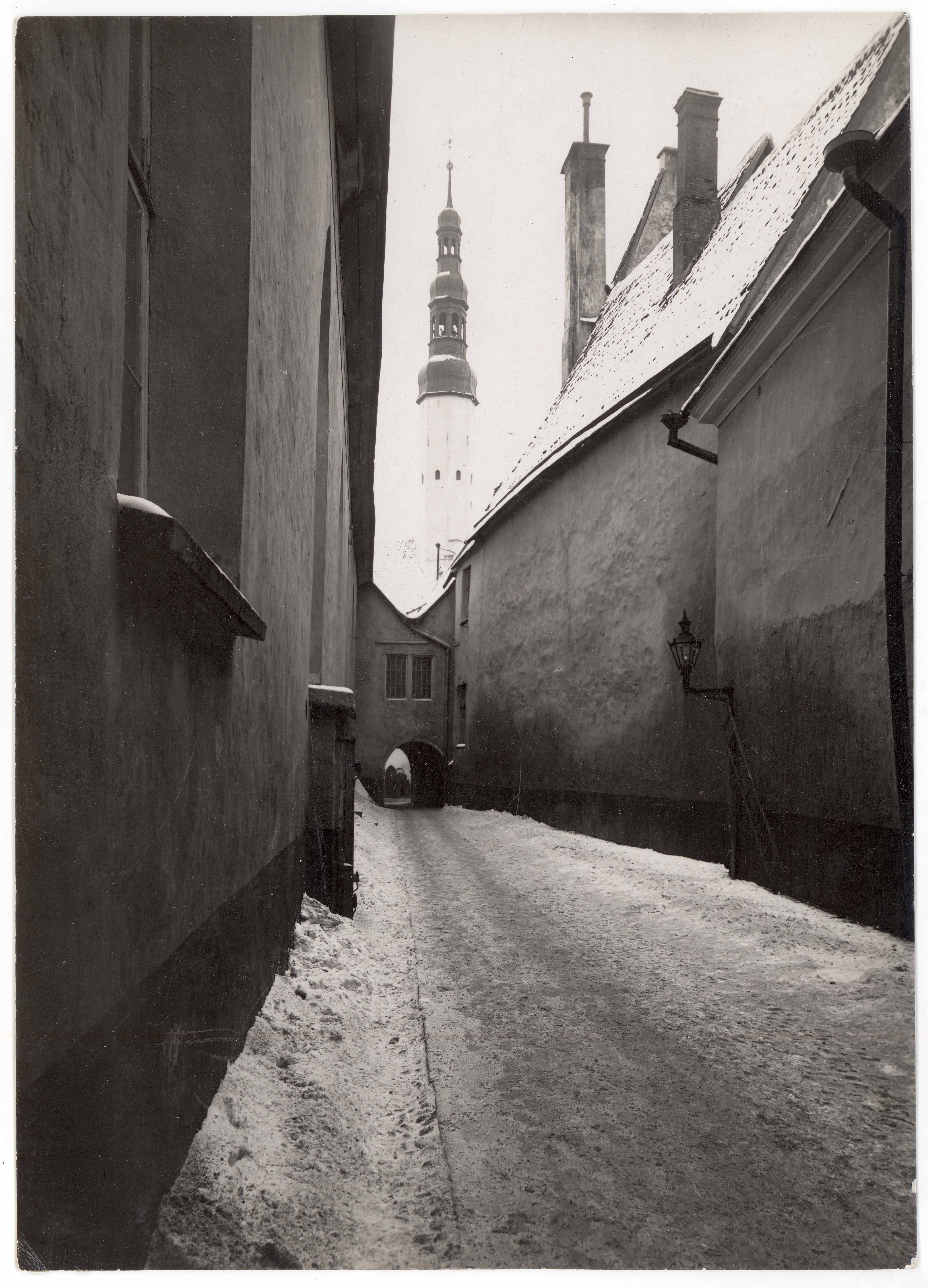 Tallinn. Börsi käik Pika ja Laia tänava vahel. Vaade kagusse Pühavaimu kiriku tornile