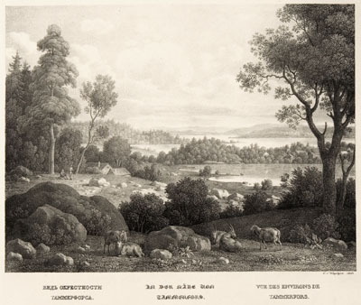 Soome, Tampere, kohavaated, maastikud, baltisaksa, kunst, graafika, litograafia, 19. saj., 1820-ndad