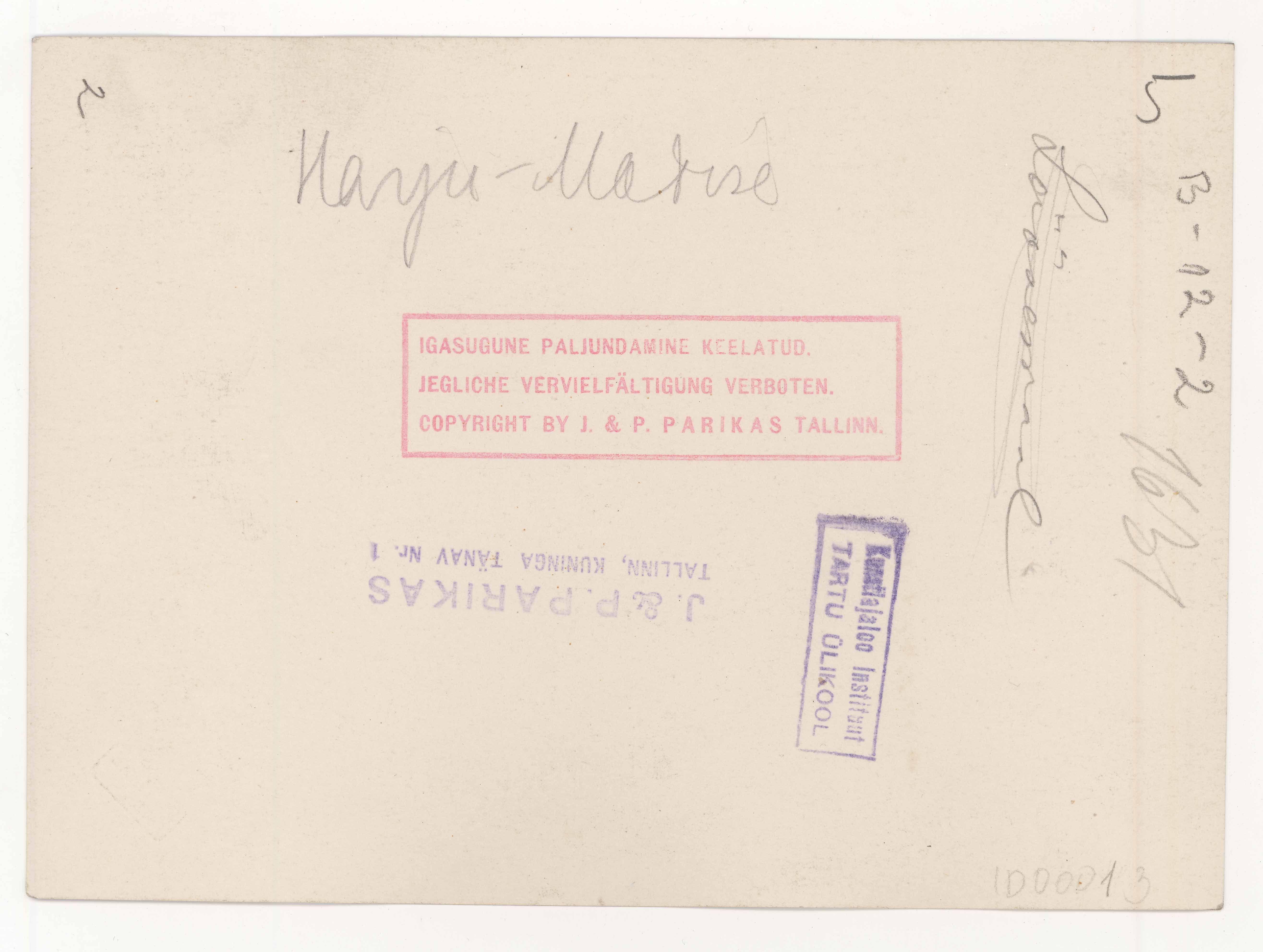 | dc.description | Tekst foto tagaküljel: 1631. Läänemaal. Harju-Madise. Templid: J&P; Instituut | et |