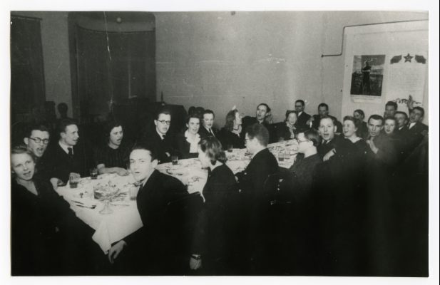 Tartu ülikooli ajaloo osakonna statsionaarsed I kursuse üliõpilased kaaslastega koosviibimisel 1941. a.