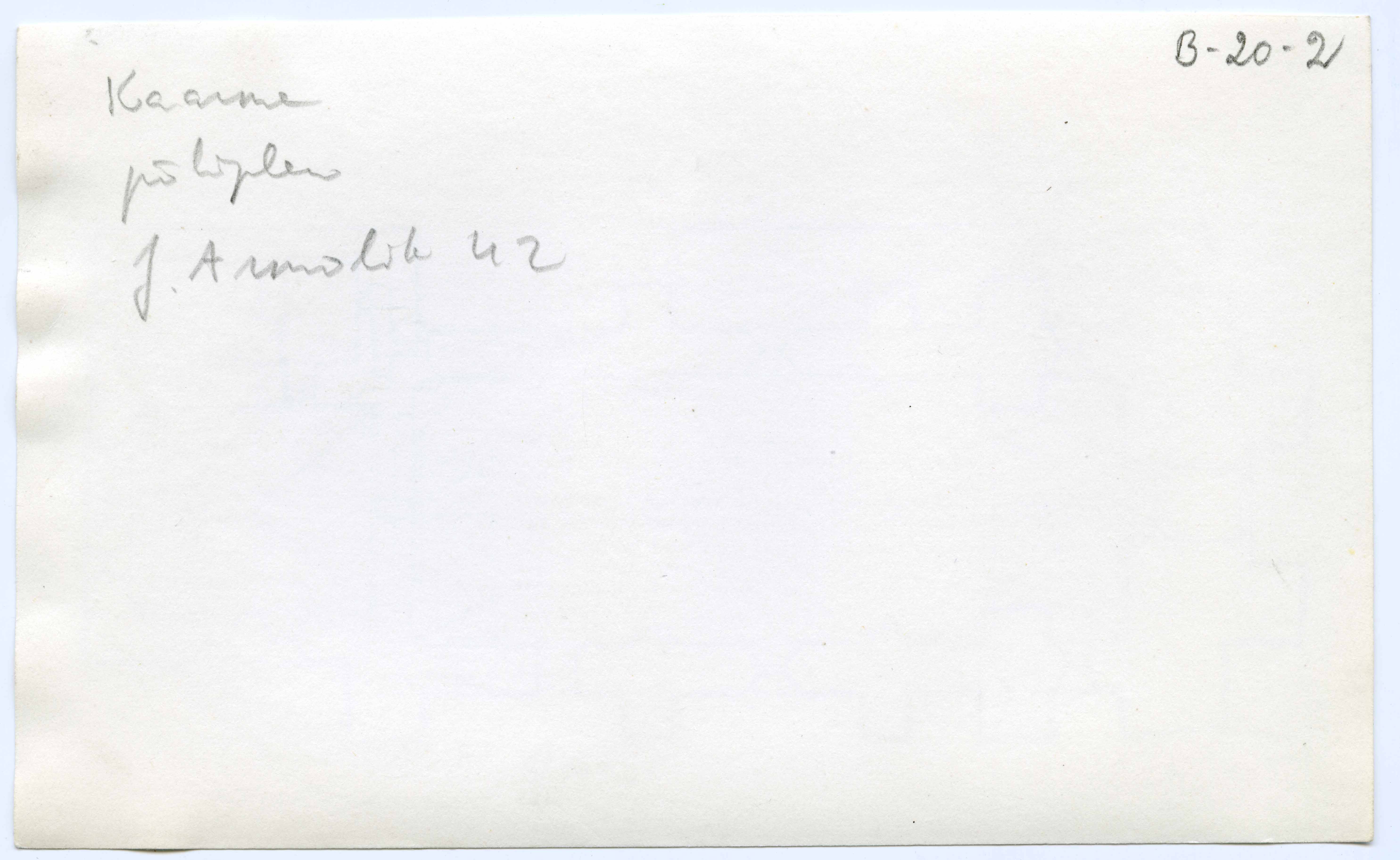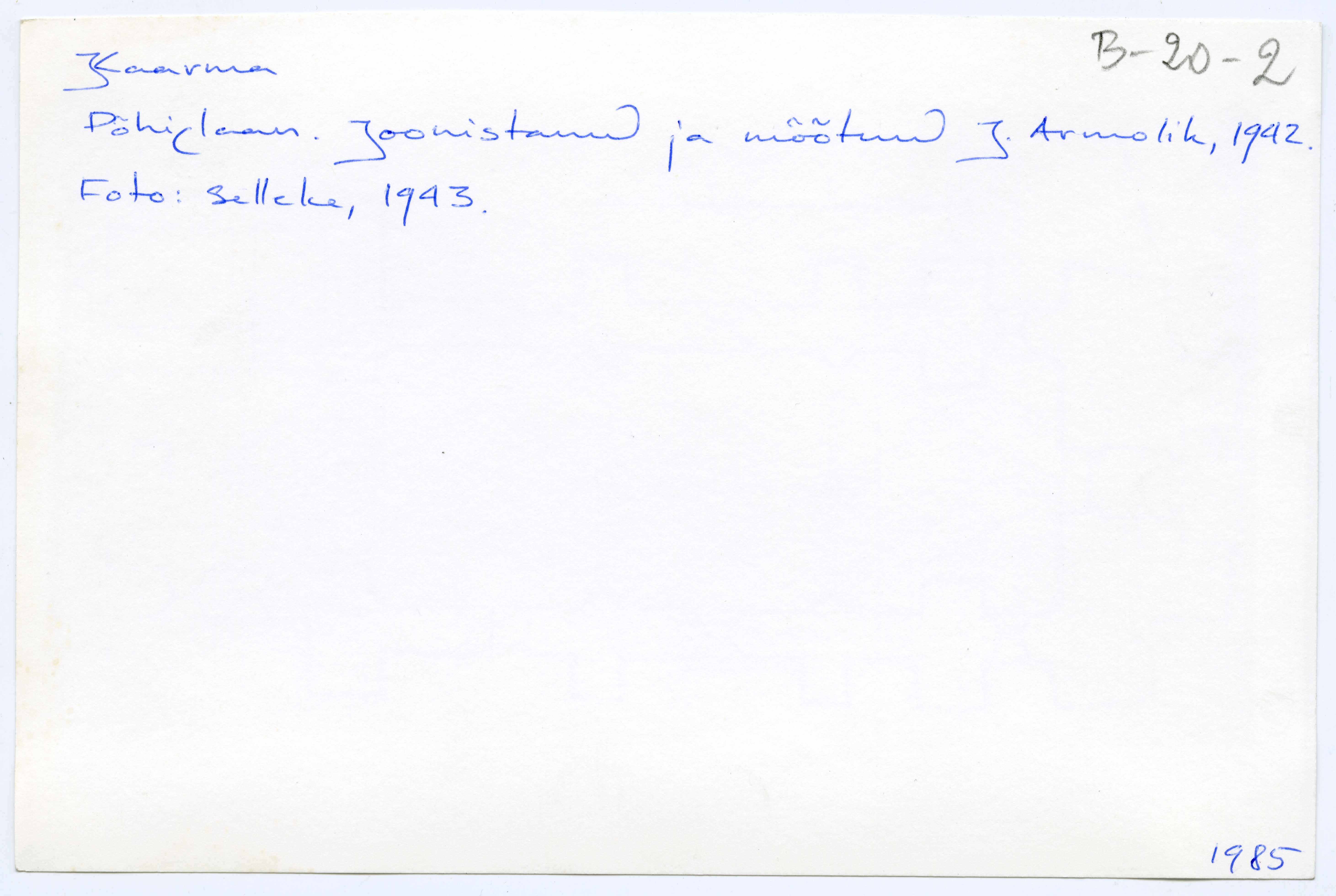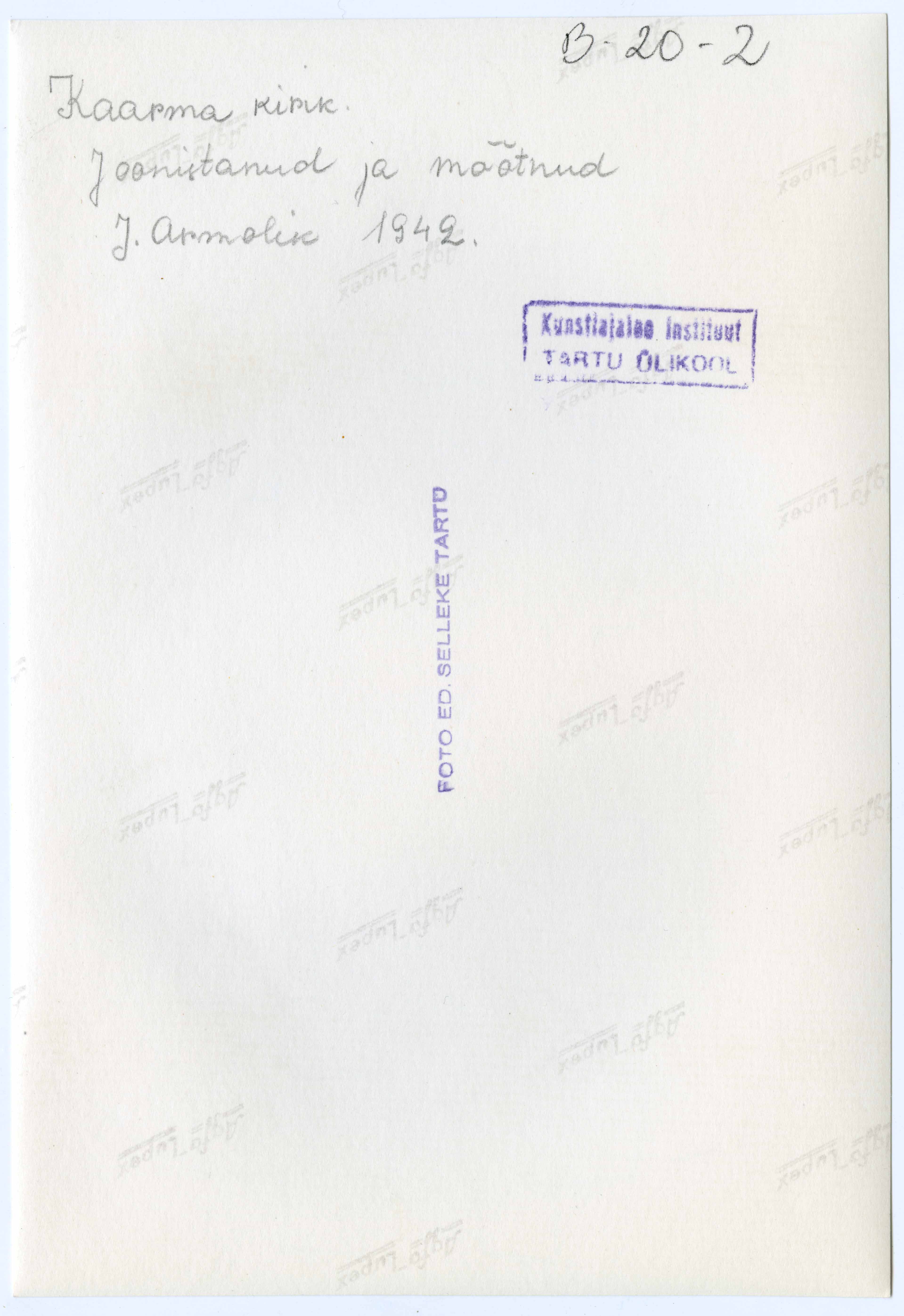 Tekst foto tagaküljel: Kaarma kirik. Joonistanud ja mõõtnud J. Armolik 1942. Templid: ED. SELLEKE; Instituut