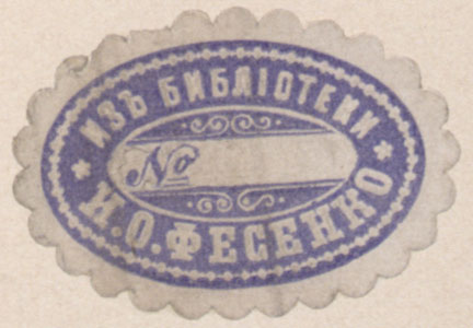 Ovaalis: ИЗЪ БИБЛIОТЕКИ / И. О. ФЕСЕНКО keskel: №