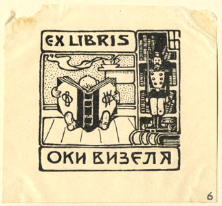| dc.description | Nelinurkses raamis poiss raamatuga, raamaturiiul ja mängusõdur. Joonises ülal paremal signeering: ФБ all: ОКИ ВИЗЕЛЯ ülal vasakul: EX LIBRIS;"Иваск | |