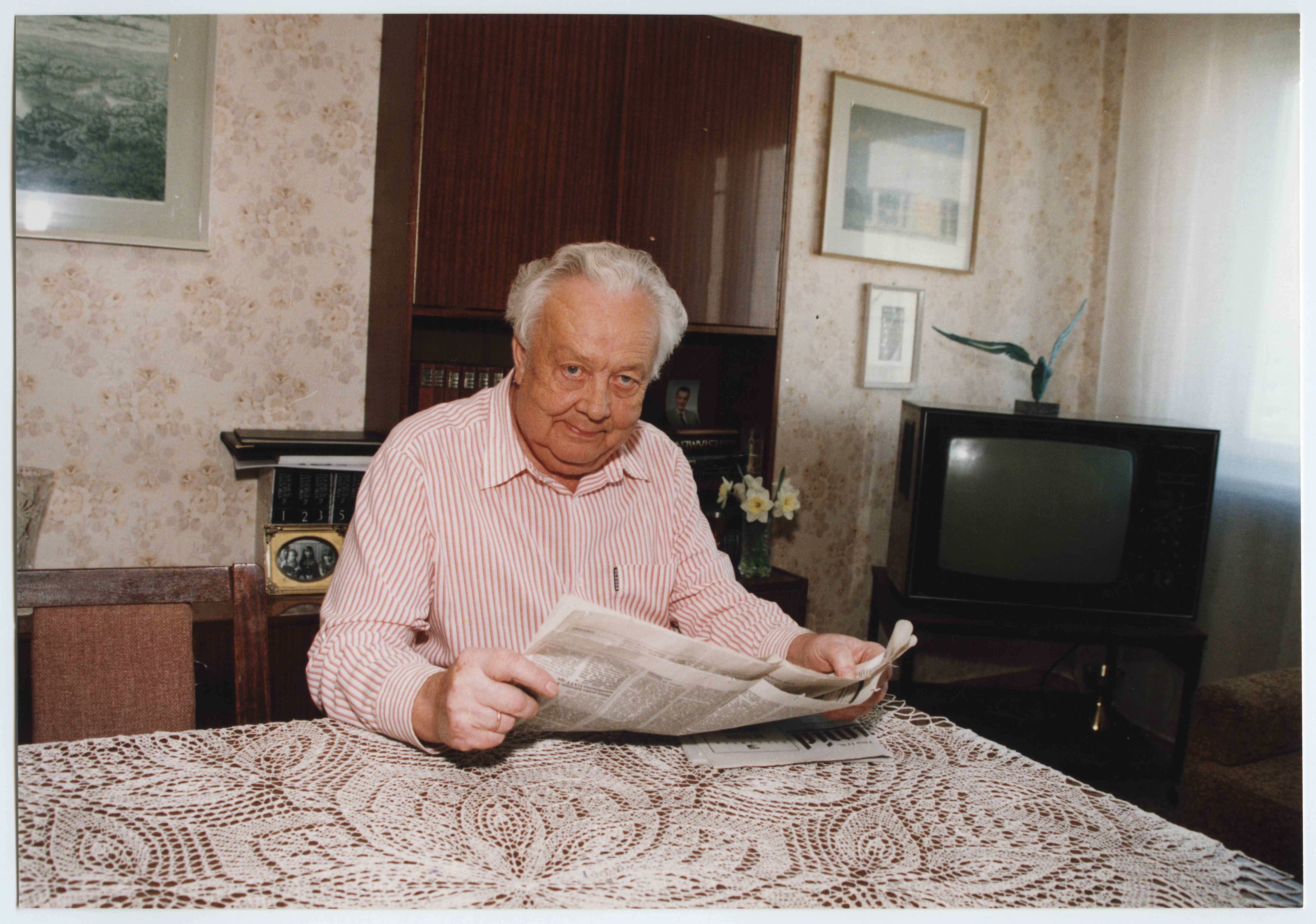 Kodus. 1C: Laua taga ajalehte lugemas; 2C: Kiiktoolis istumas; 3C: Abikaasa Helgi Peegliga diivanil istumas