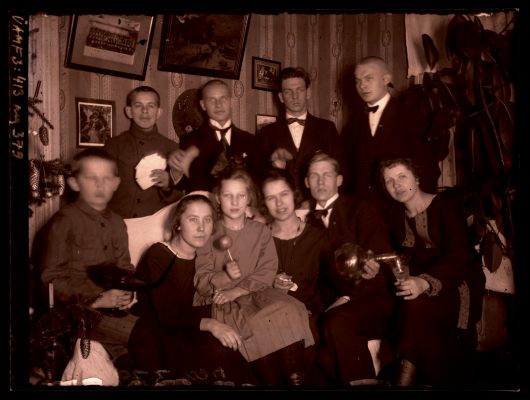 Jaan Kalviste tundmatute kaaslastega koosviibimisel. Grupipilt