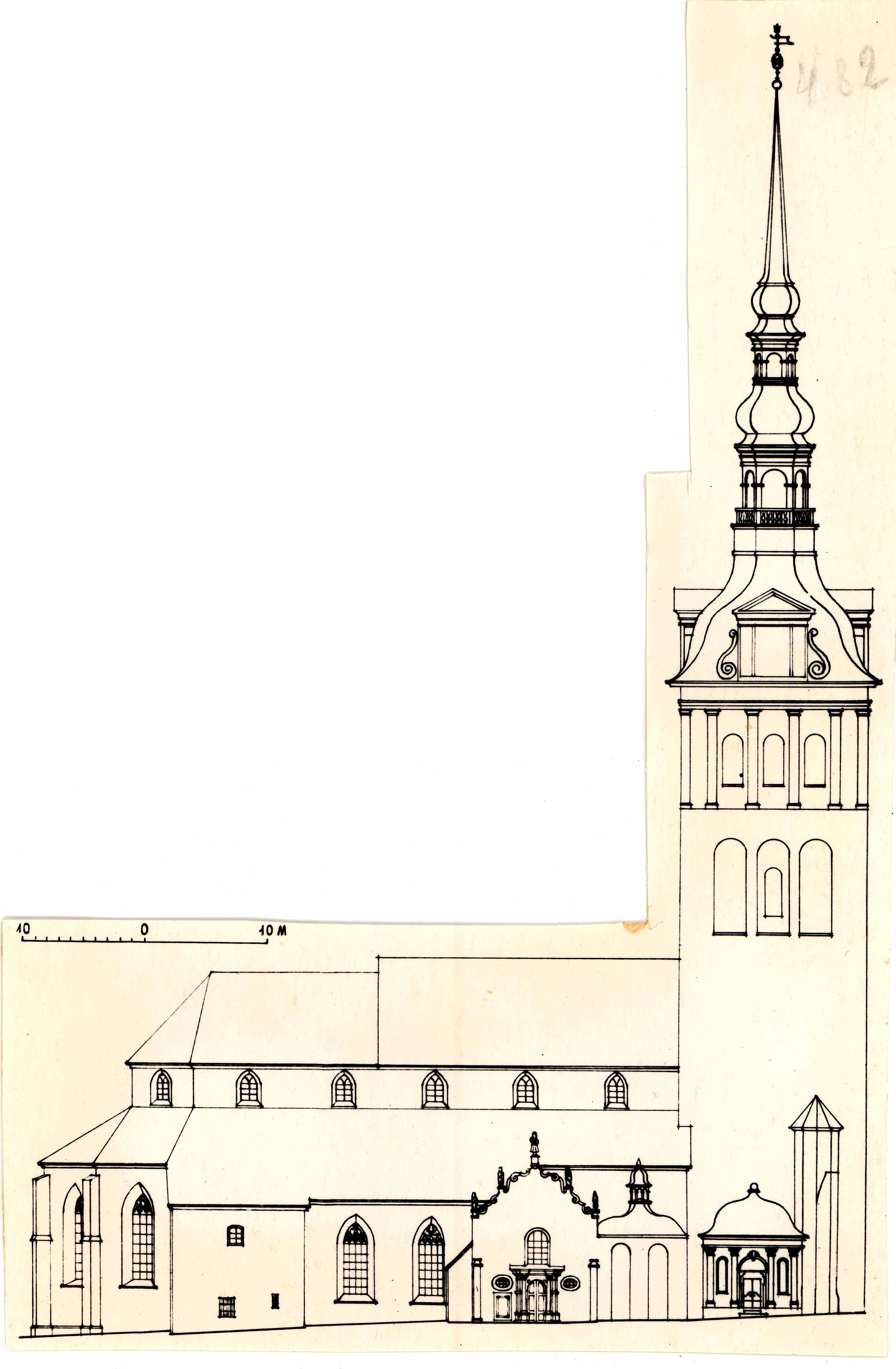 Tallinn. All-linn. Niguliste kirik. Põhjafassaadi joonis