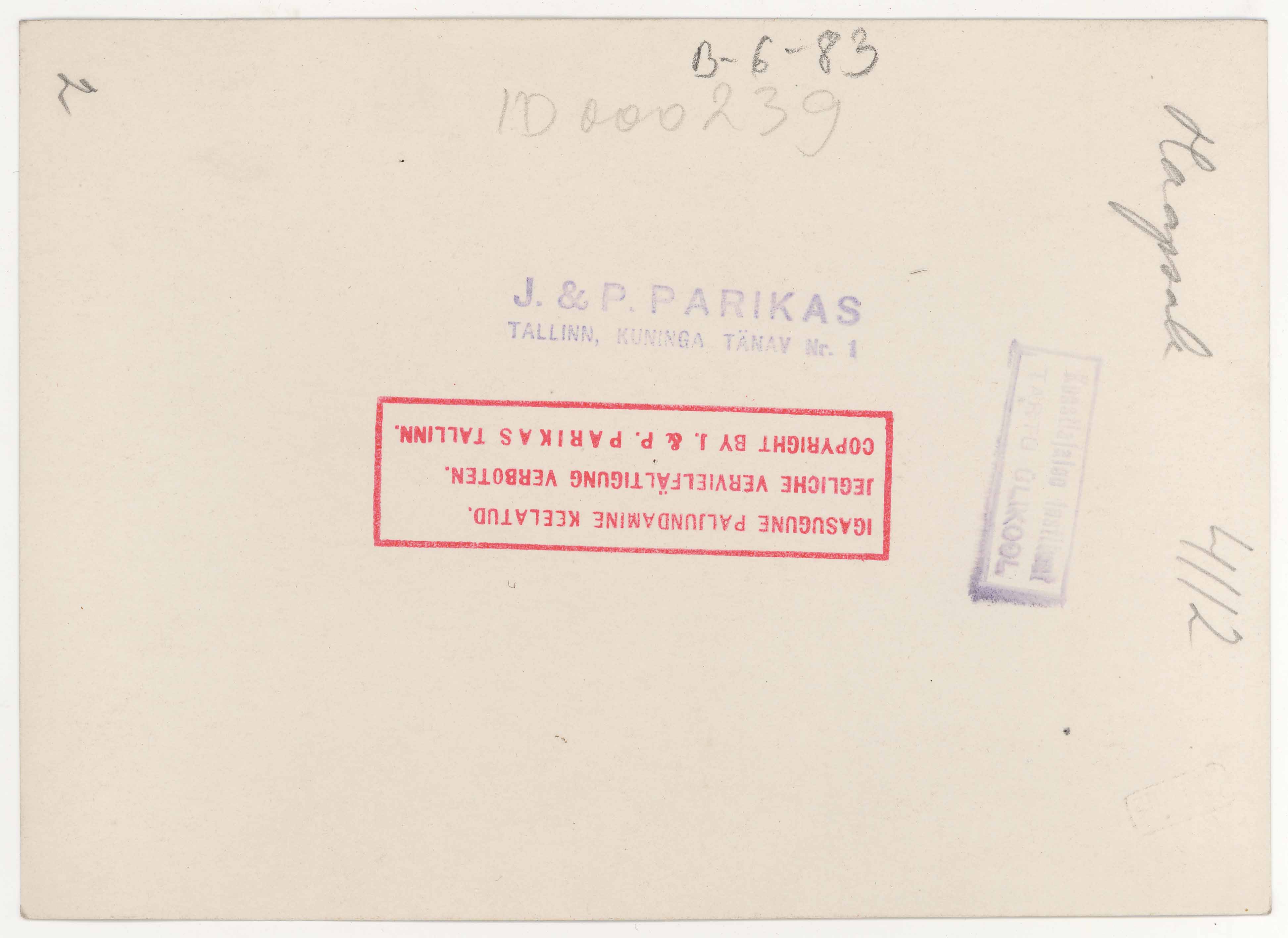 Tekst foto tagaküljel: 4112 Haapsalu. Templid: J&P; Instituut