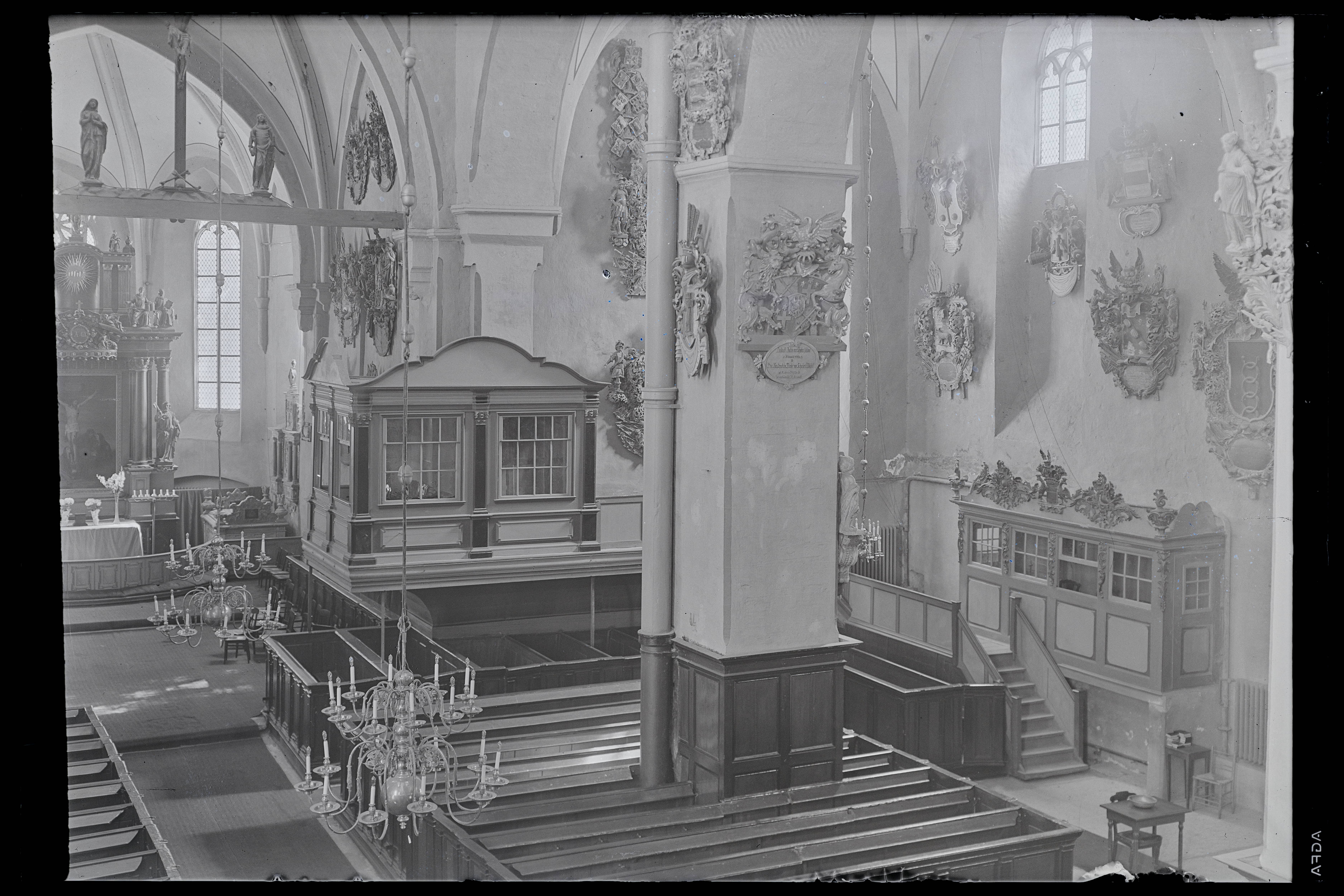 Tallinn. Toomkiriku kooriruumis sisevaade pikihoonesse W suunas. Esiplaanil võidukaare grupp