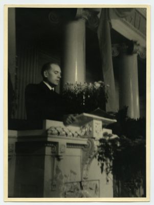 Koort, Alfred. Kõnelemas Tartu ülikooli aulas