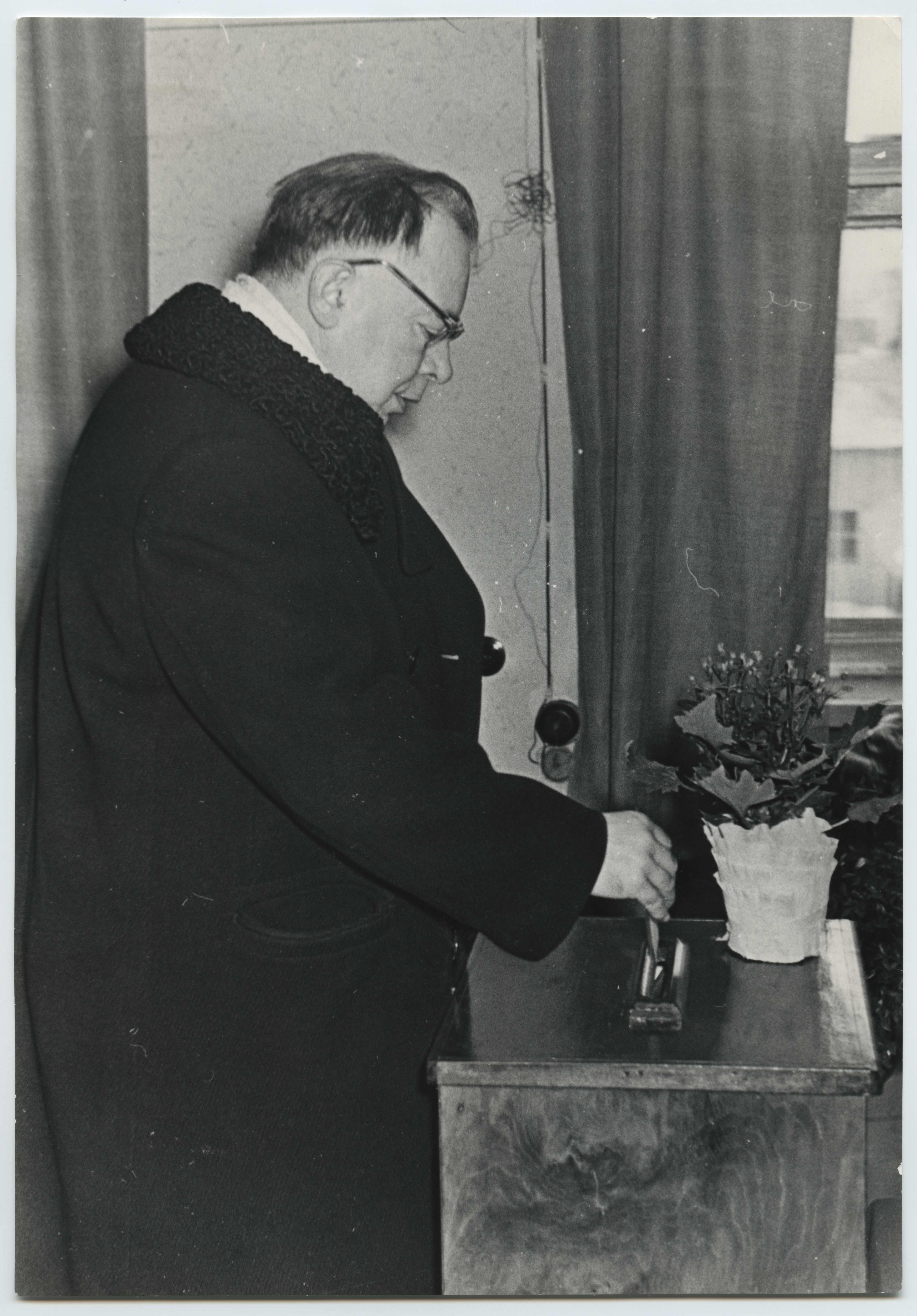 Aksel Kipper hääletamas Eesti NSV Ülemnõukogu ja kohalike nõukogude valimistel 17. märtsil 1963