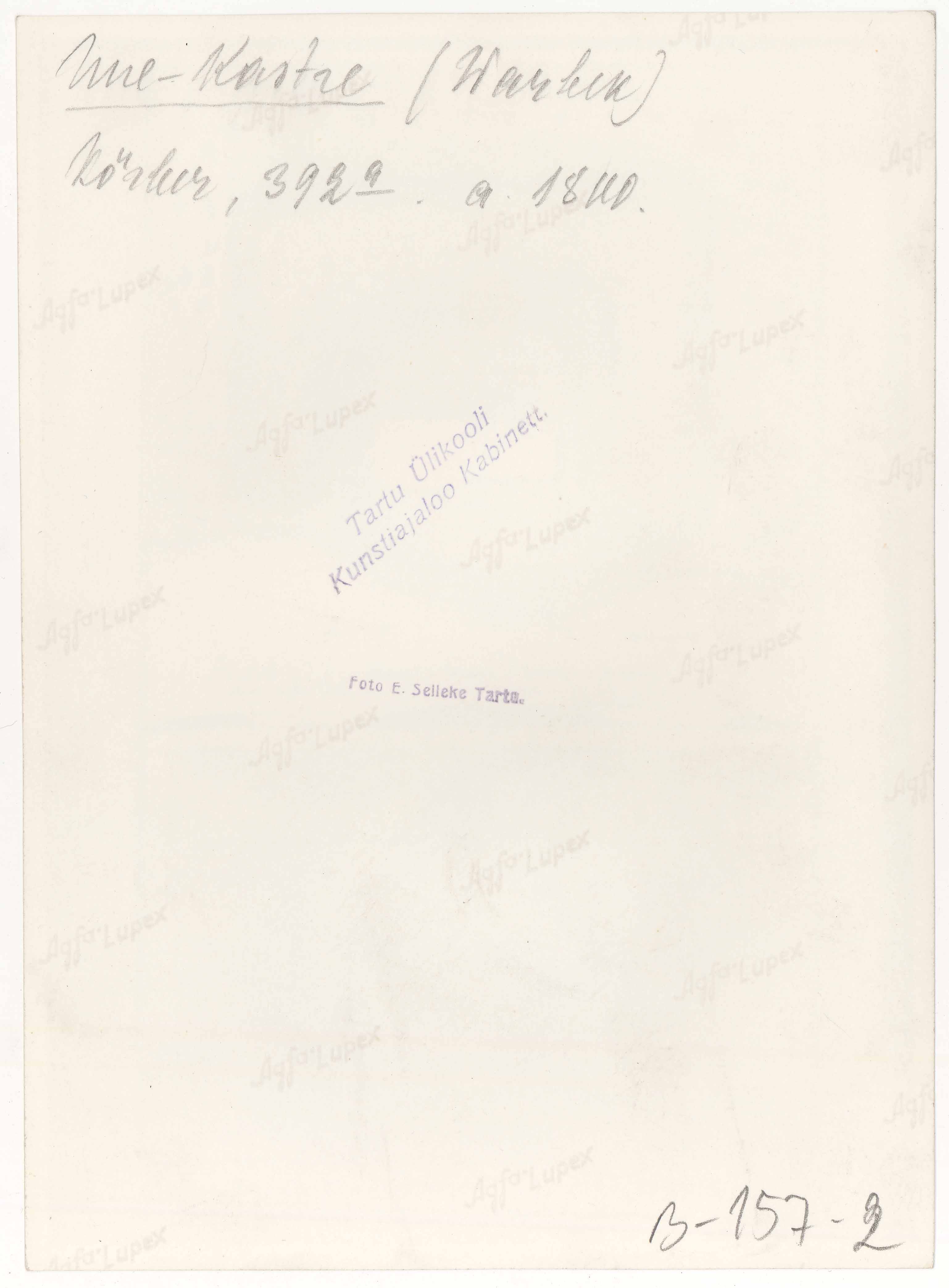 | dc.description | Tekst foto tagaküljel: Uue-Kastre (Warbek). Körber 392a a. 1800. Templid: E. Selleke; Kabinett | et |