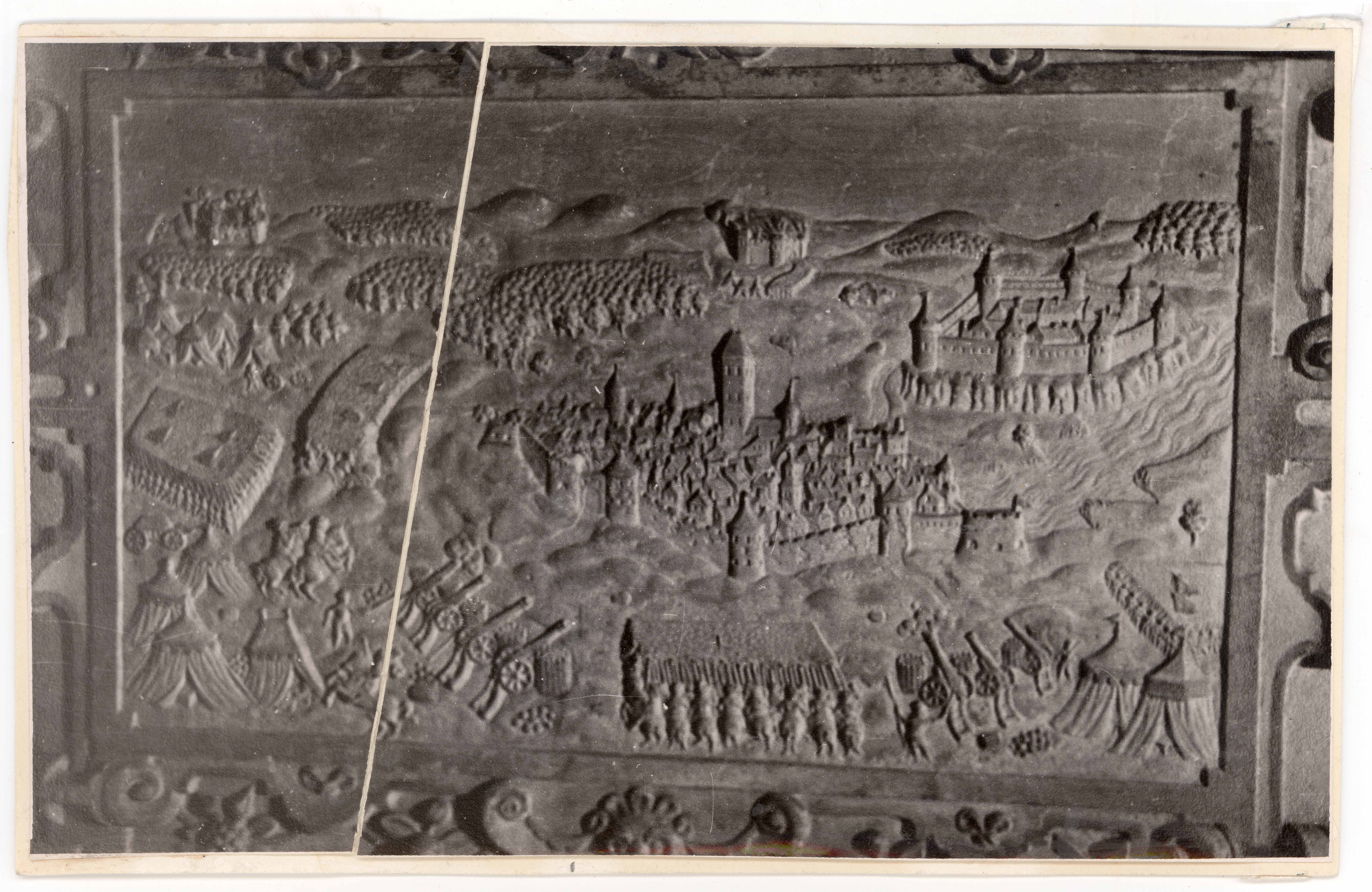 Tallinn. Toomkirik. Pontus de la Gardie hauamonument. Sarkofaag. Eestvaade. Detail. Narva vallutamise stseen