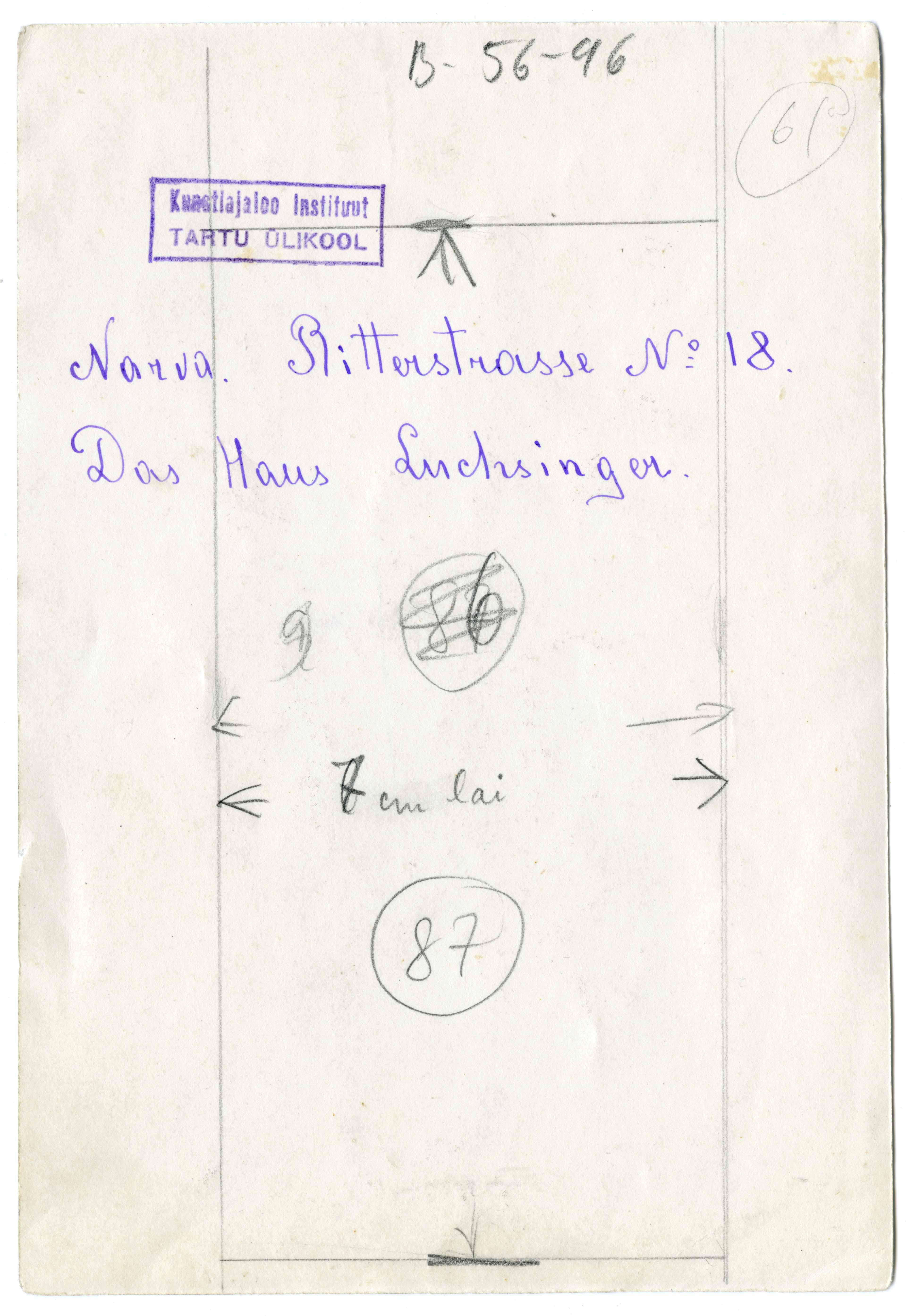 Tekst foto tagaküljel: Narva. Ritterstrasse No 18. Das Haus Luchsinger. Tempel: Instituut