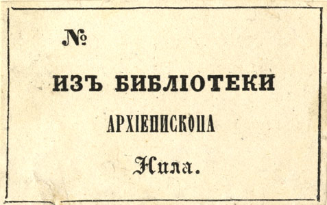 Nelinurkses raamistuses: № / ИЗЪ БИБЛIОТЕКИ / АРХIЕПИСКОПА / Нила.