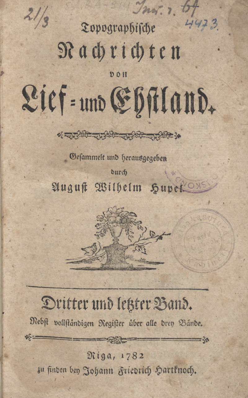 Topographische Nachrichten von Lief- und Ehstland. Bd. 3 : nebst vollständigen Register über alle drey Bände