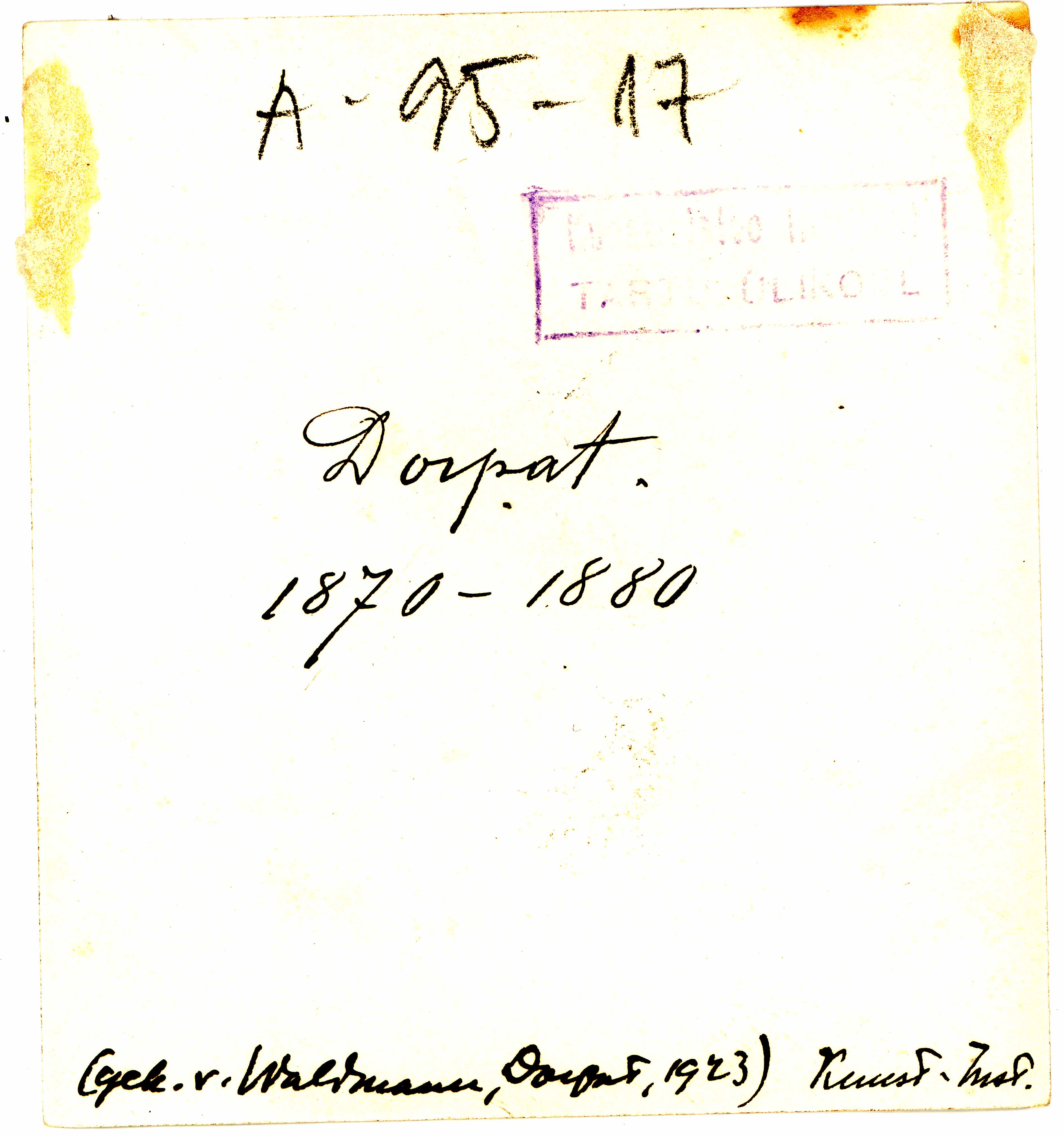 | dc.description | Tekst foto tagaküljel: Dorpat. 1870-1880. (gek v Waldmann, Dorpat, 1923) Kunst. Inst. Tempel: Instituut | et |