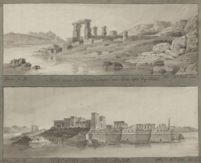 Reste eines der ältesten Tempel am Lybis. Ufer bey Philæ. West-Seite der Insel Philæ