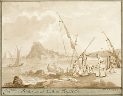 Hispaania, kohavaated, maastikud, baltisaksa, kunst, koopiad, joonistus, seepia (kunst), 19. saj., 1820-ndad