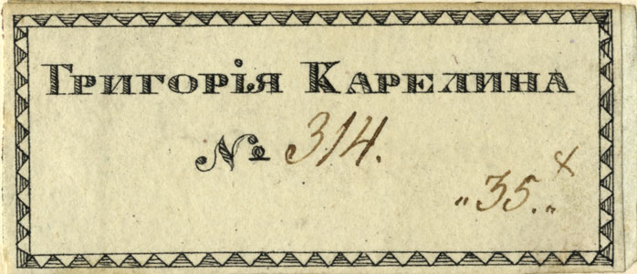 Nelinurkses ornamenteeritud raamistuses: ГРИГОРіЯ КАРЕЛИНА / №