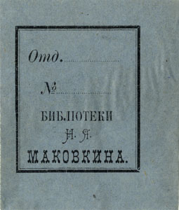 Nelinurkses raamistuses tekst: Отд. ... / №... / БИБЛIОТЕКИ / Н. Я. / МАКОВКИНА.