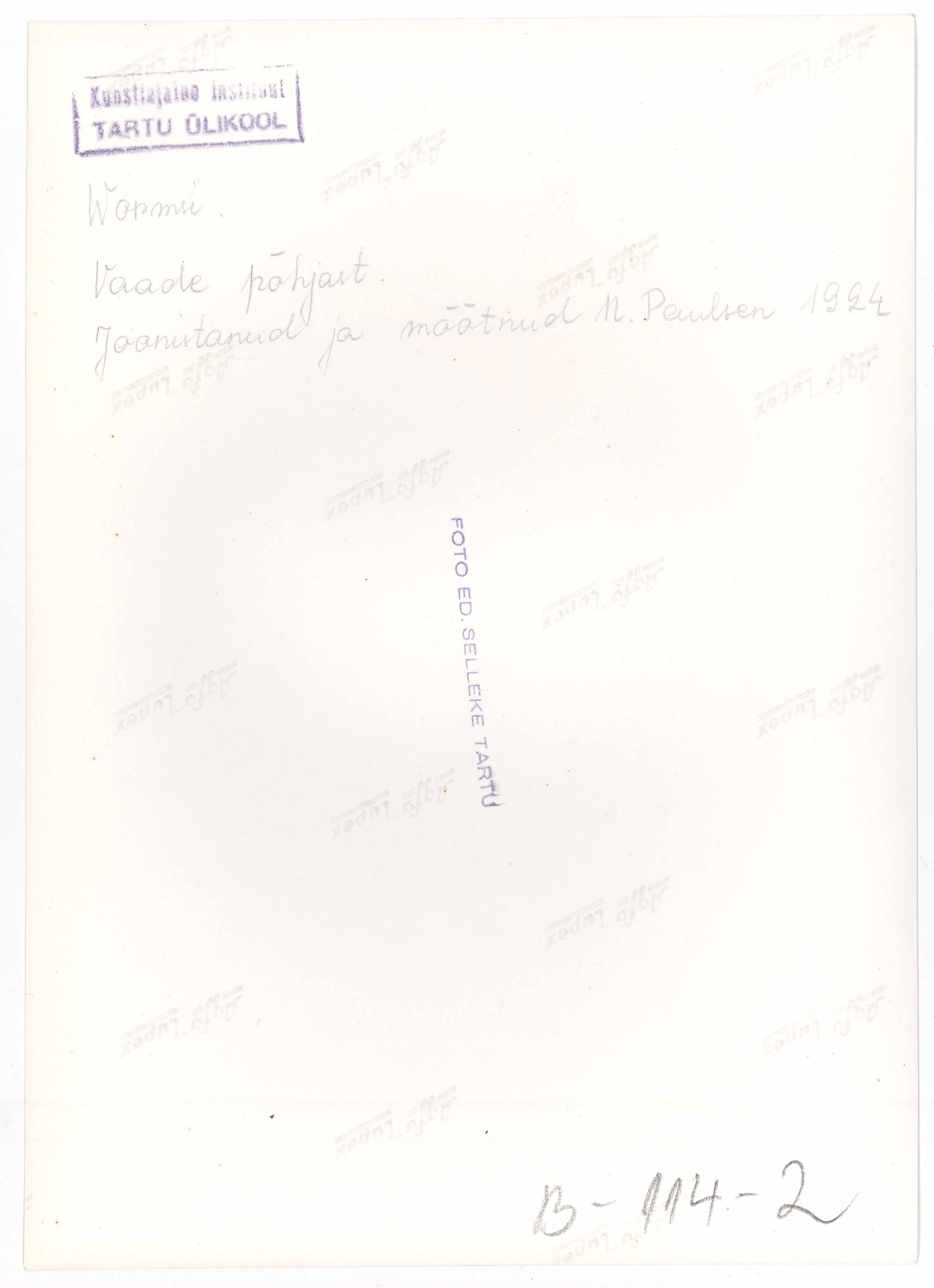 Tekst foto tagaküljel: Wormsi. Vaade põhjast. Joonistanud ja mõõtnud N. Paulsen 1924. Templid: ED. SELLEKE; Instituut