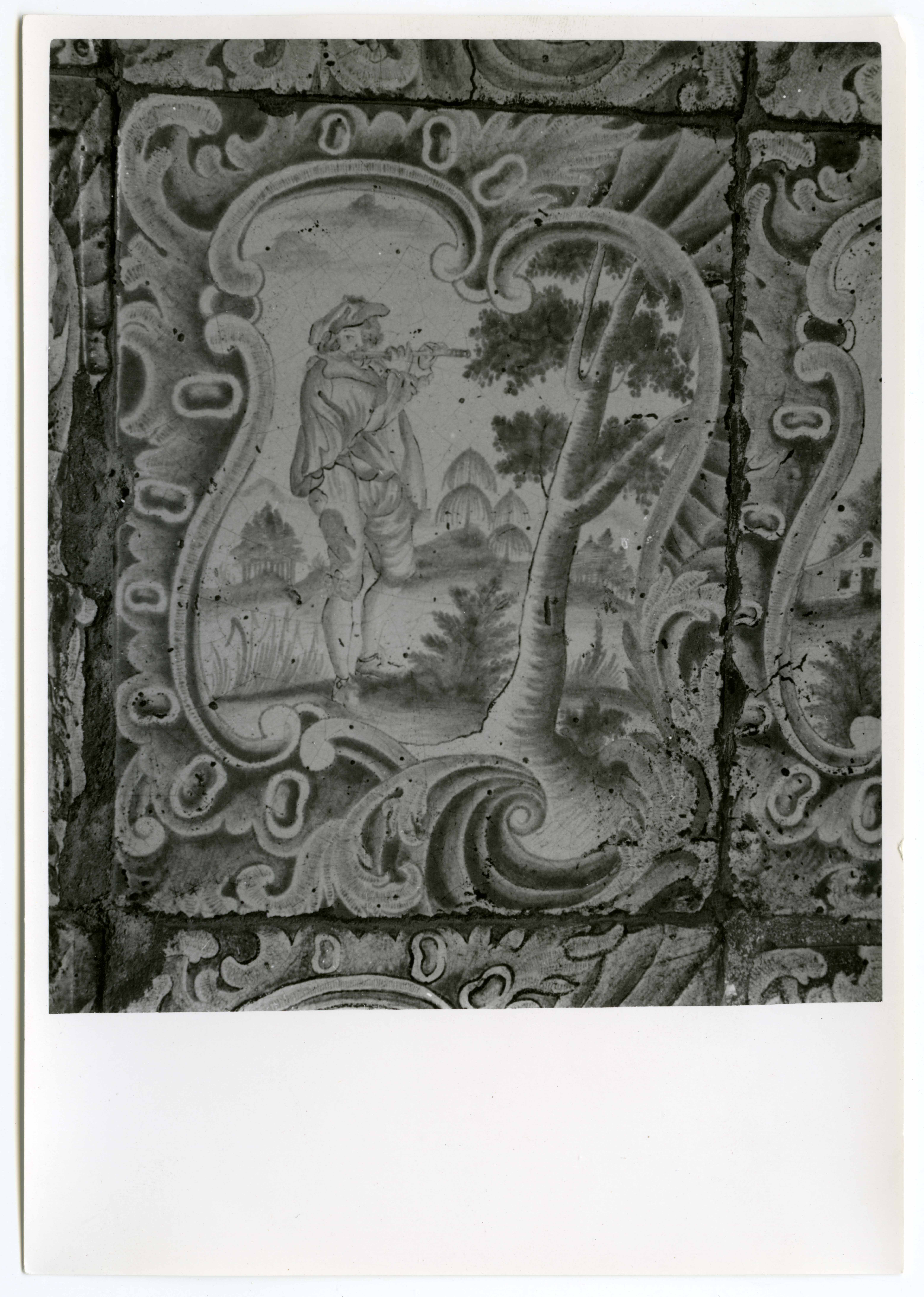 Narva. Hollandi kahhelahju detail (17. saj II p) Suur tn 1/Mäe tn 2 majas (majas asus 1940.aa alguses Vene trükikoda)