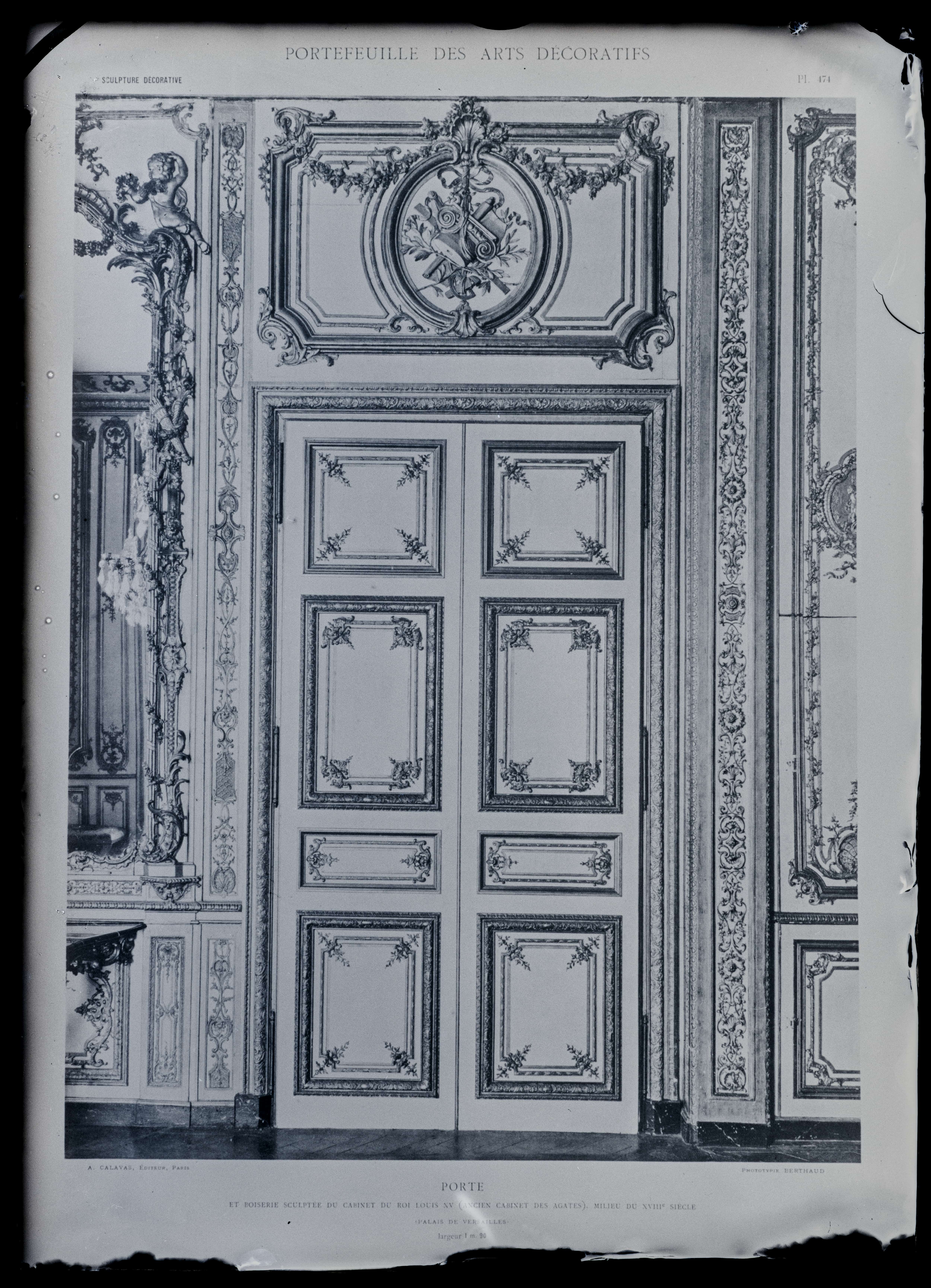 Tekst negatiivi ümbrikul: Versailles. Porte et boiserie. Sculptée du cabinet du Roi Louis XV. Tempel: Selleke