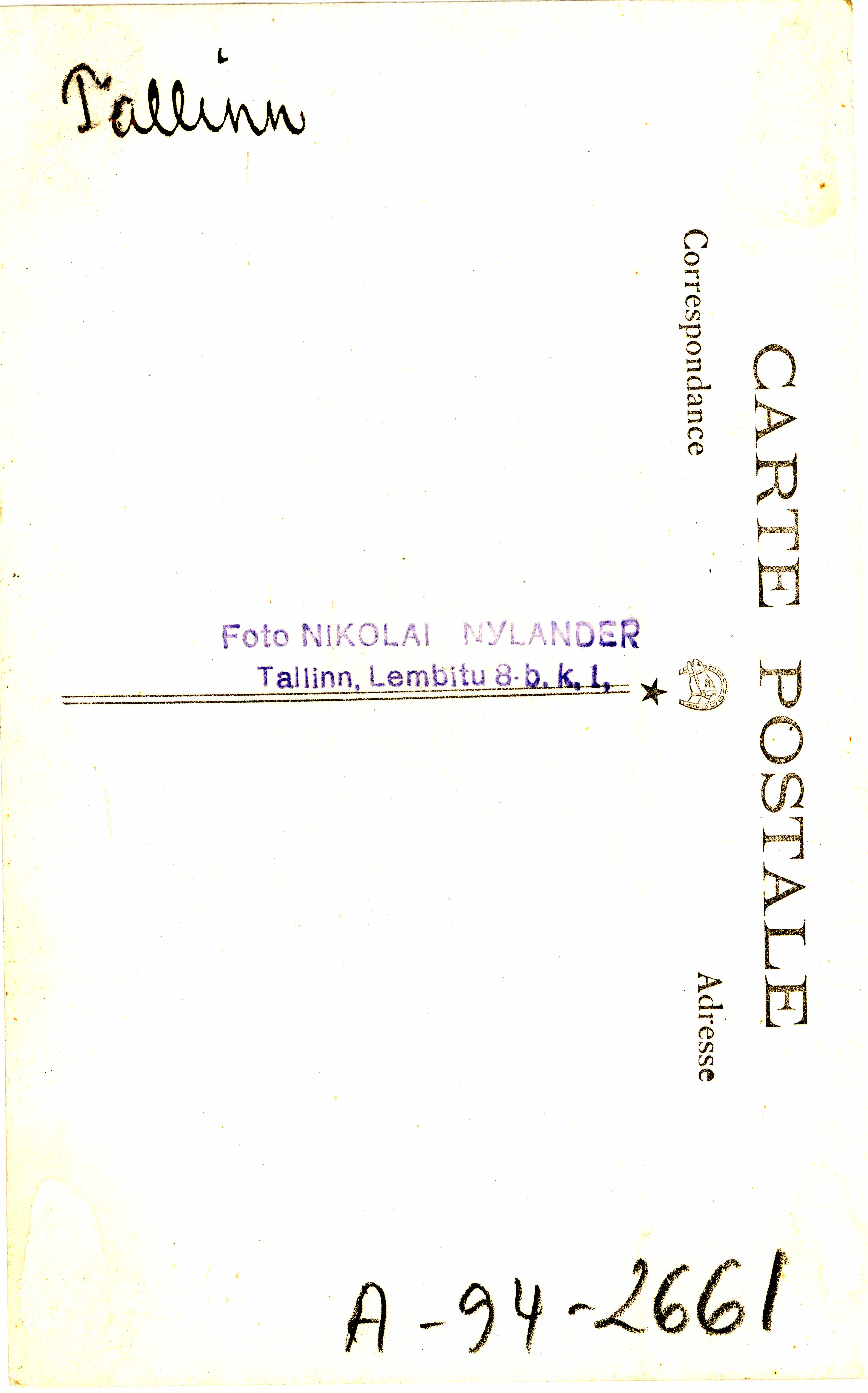 Tekst foto tagaküljel: Tallinn. Tempel: Nylander