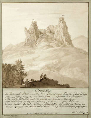 Saksamaa, kohavaated, maastikud, baltisaksa, kunst, joonistus, seepia (kunst), 19. saj., 1820-ndad