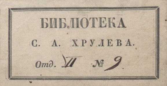 Nelinurkses raamistuses: БИБЛIОТЕКА / С. А. ХРУЛЕВА. / Отд. №
