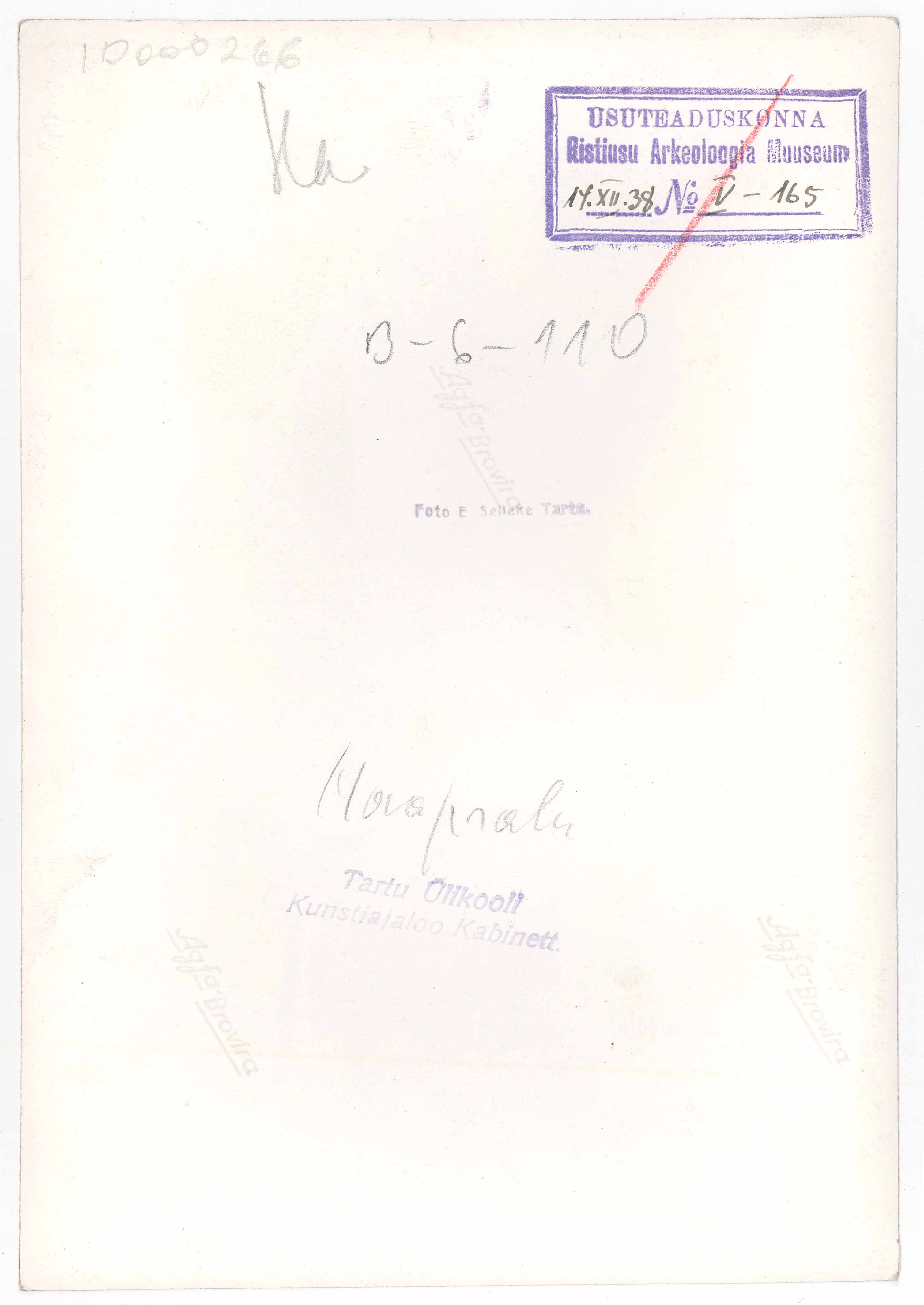Tekst negatiivi ümbrikul: Haapsalu lossikirik, puuskulptuur. Templid: Hamini dep, Selleke 1938