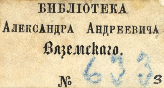 | dc.description | Lehel tekst: БИБЛIОТЕКА / АЛЕКСАНДРА АНДРЕЕВИЧА / Вязеискаго. / № | |