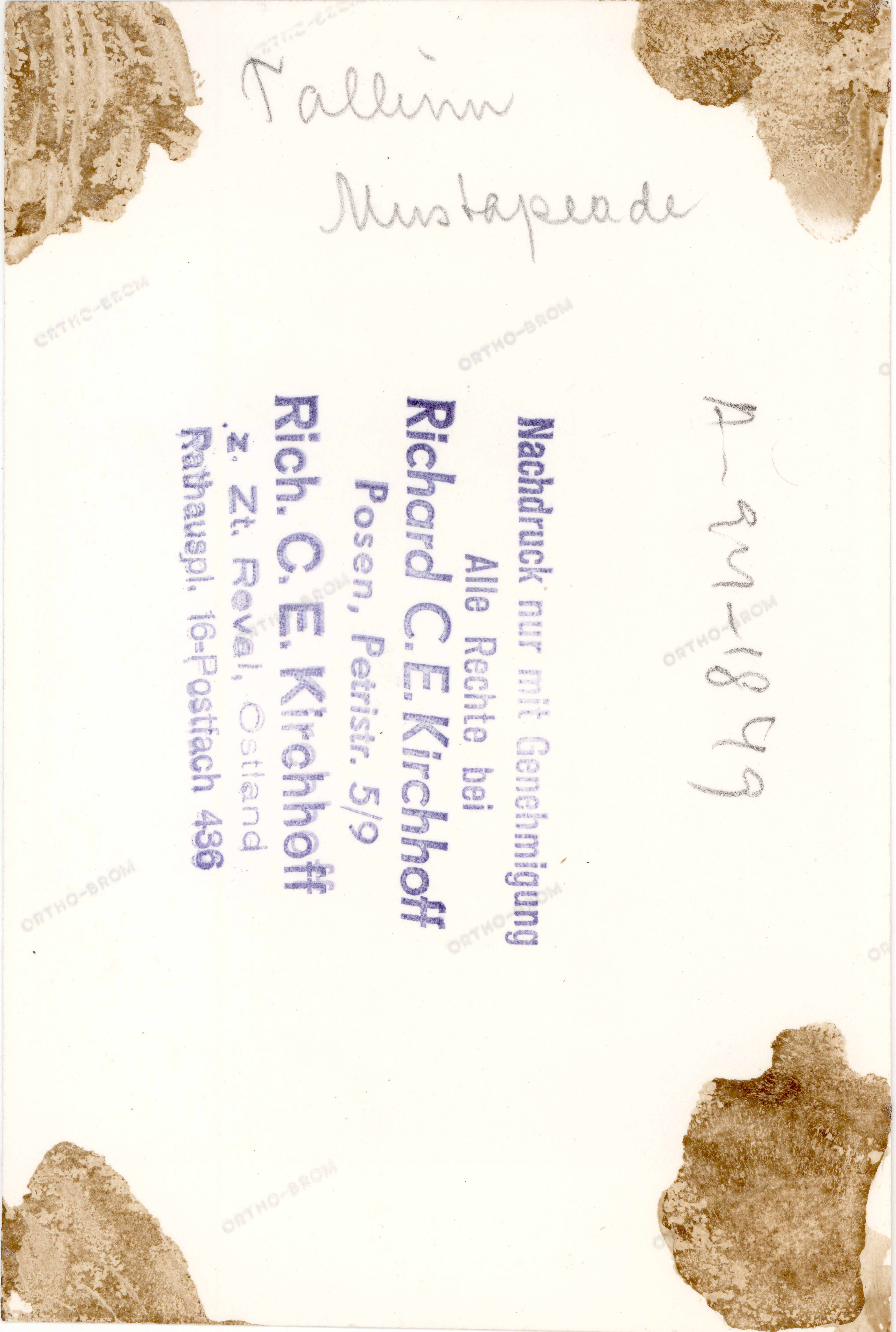 Tekst foto tagaküljel: Tallinn. Mustpeade. Tempel: Kirchhoff