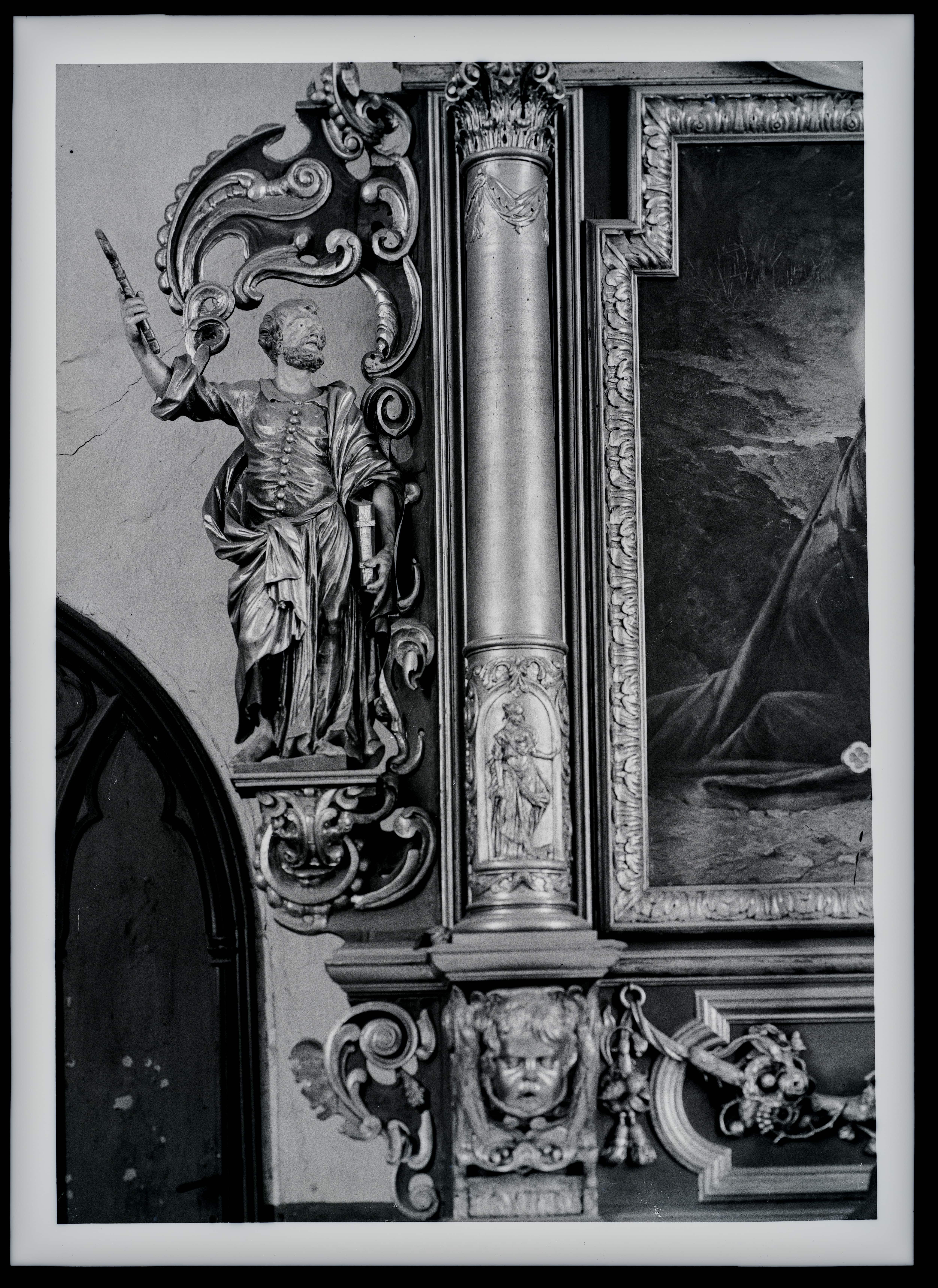 Vigala Maarja kirik. Altari vasakpoolne Püha Peetruse figuur. Christian Ackermann. 1680.a.