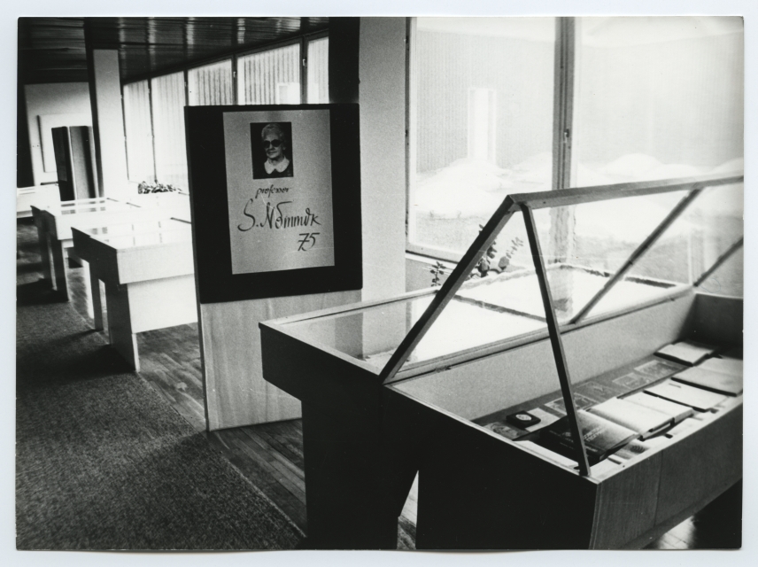 Salme Nõmmiku 75. sünnipäevale pühendatud näitus Tartu ülikooli raamatukogus lugemissaalide fuajees