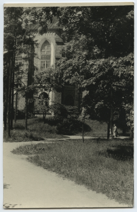 Tartu. Vaade Tartu ülikooli raamatukogu hoonele puude vahelt