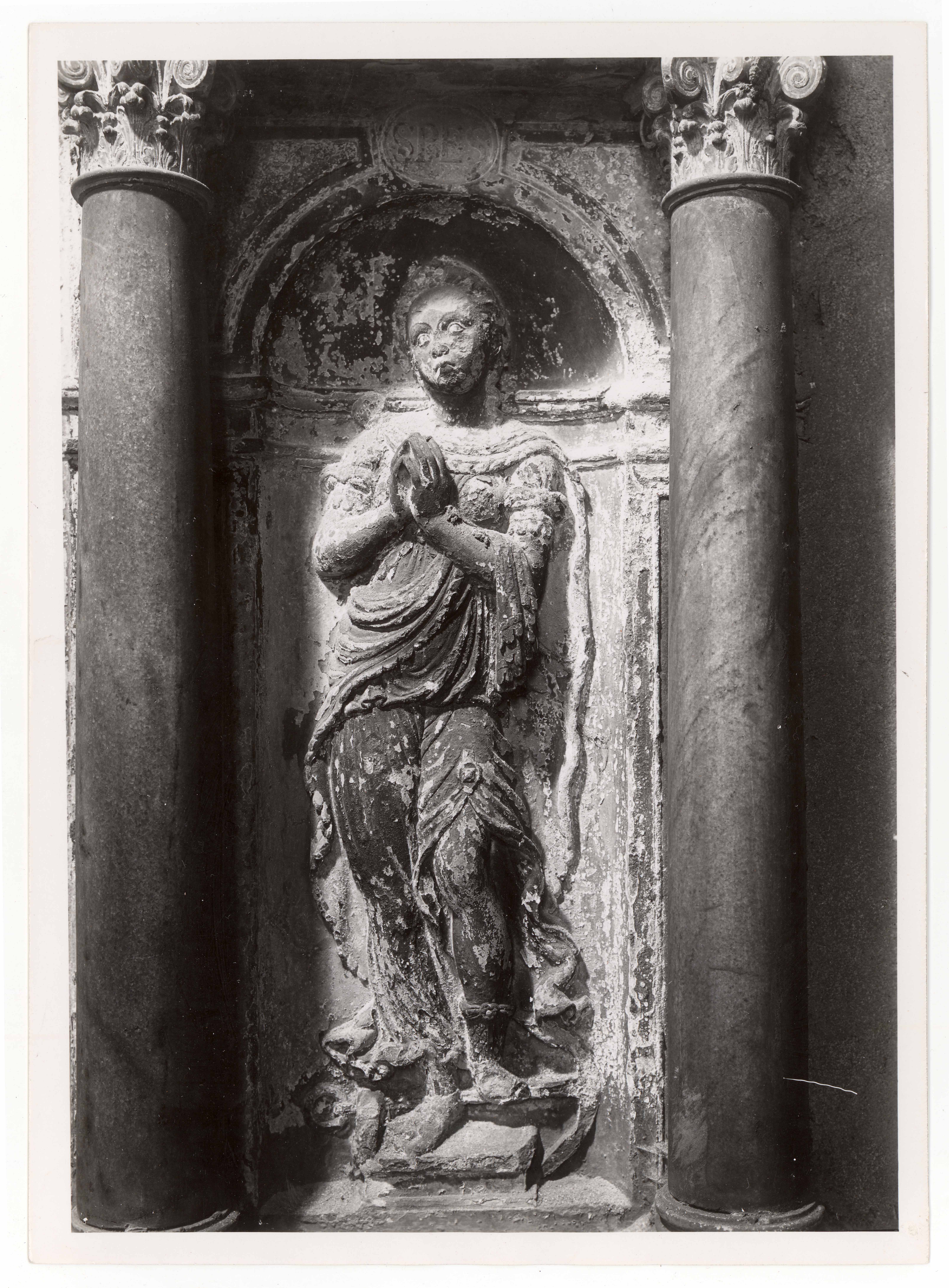 Tallinn. Toomkirik. Pontus de la Gardie epitaafi parempoolne figuur ehissammaste vahel