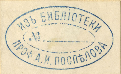 Ovaalis: ИЗЪ БИБЛIОТЕКИ / № ... / ПРОФ. А.И. ПОСПѢЛОВА
