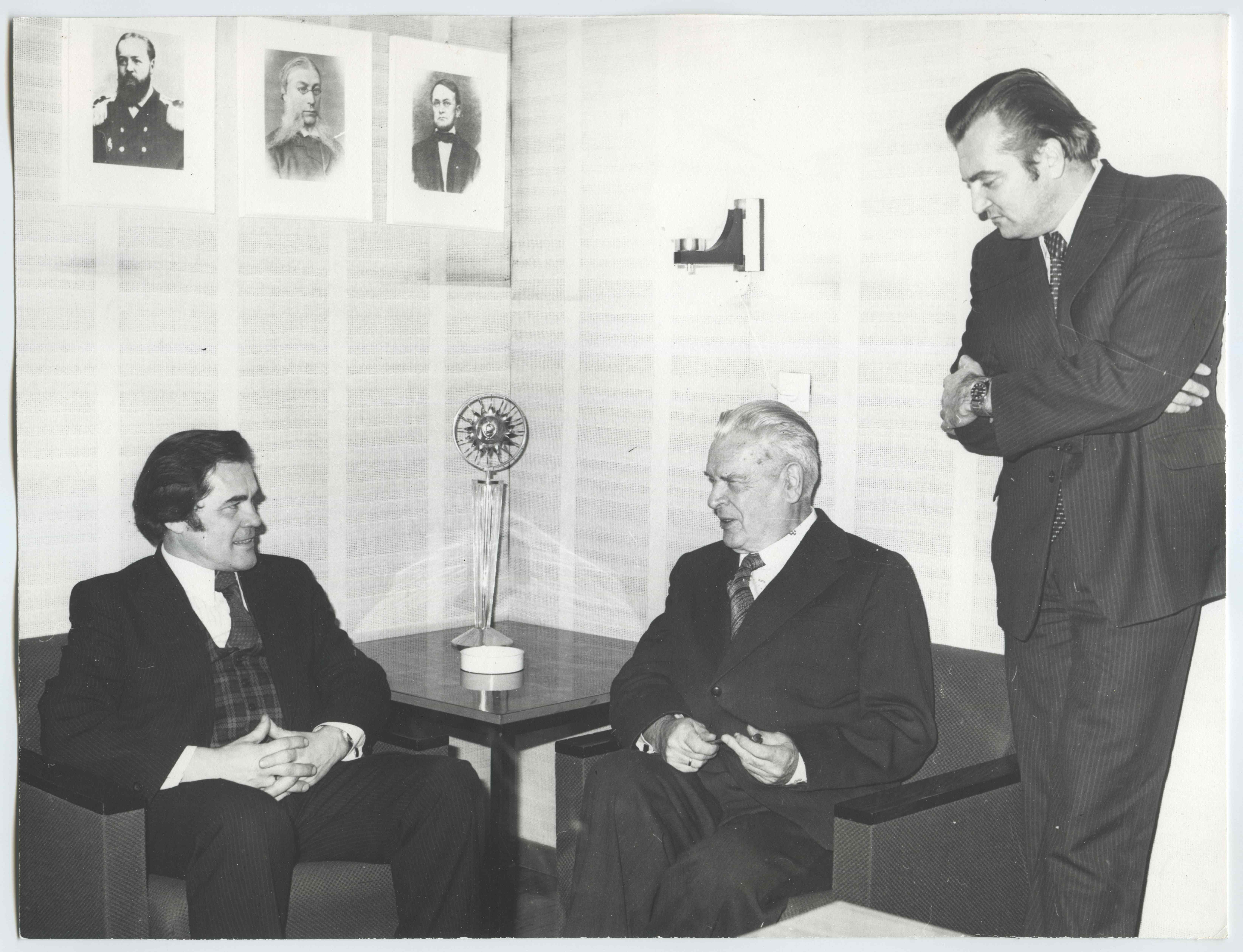 Lembit Allikmets (vasakult), Elmar Karu ja Vaino Vahing vestlemas