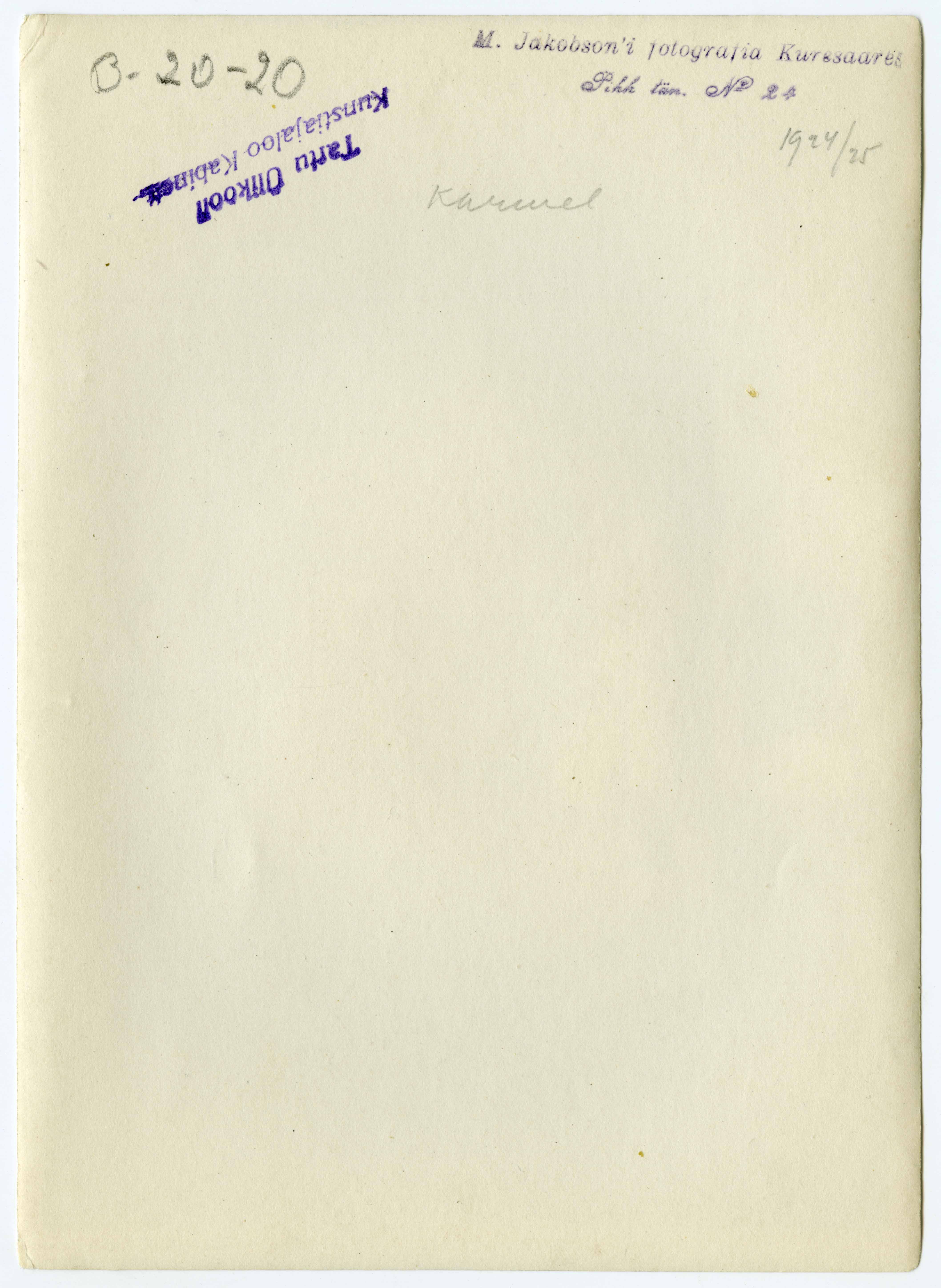 | dc.description | Tekst foto tagaküljel: Karmel. 1924/25. Templid: M. Jakobsoni fotograafia; Instituut | et |