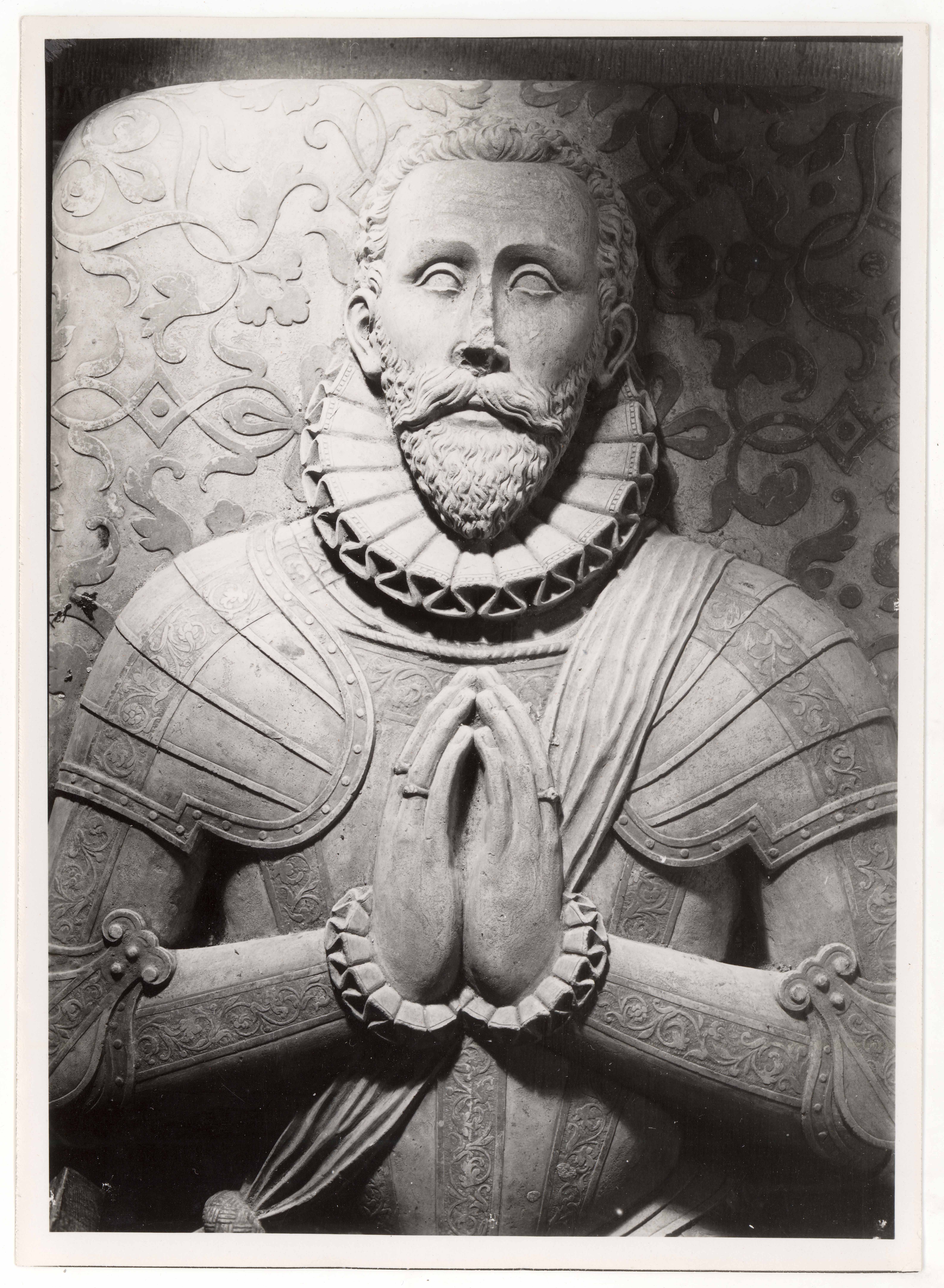 Tallinn. Toomkirik. Pontus de la Gardie portreebüst tema hauamonumendi sarkofaagil