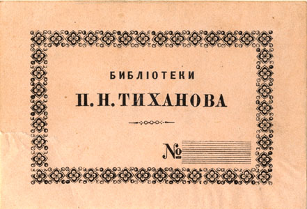 Nelinurkses ornamenteeritud raamistuses: БИБЛIОТЕКИ / П. Н. ТИЧАНОВА / №
