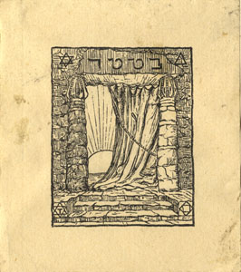 Nelinurkses raamis müür, milles sammastega ääristatud ning osaliselt eesriidega varjatud avaus, millest paistab päike joonise ülal ja all vasakul nurgas Taaveti täht, ülal paremal kolmnurk, all paremal ruut rombis. Joonises ülal keskel: בטטד