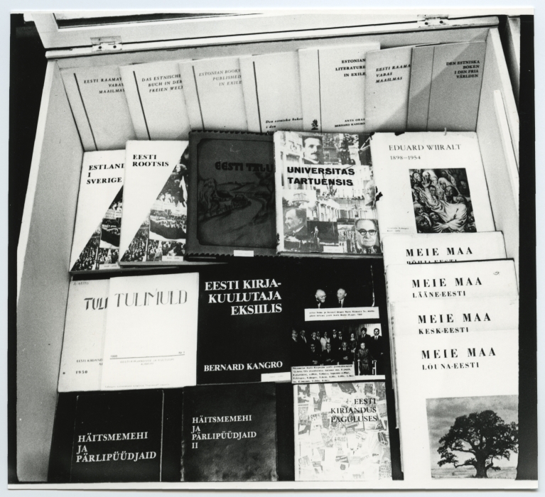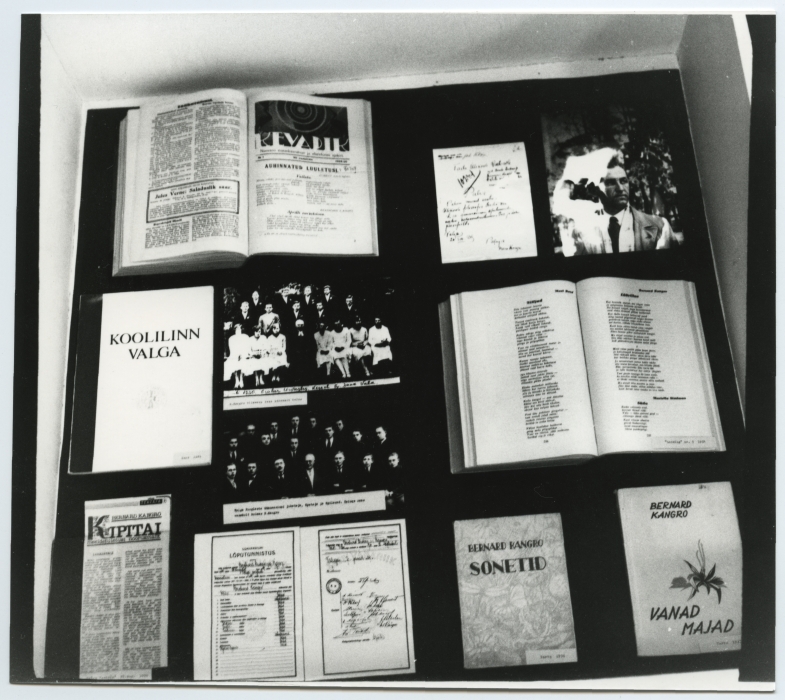 Bernard Kangro 80. sünnipäevale pühendatud näitus Tartu ülikooli raamatukogus konverentsisaali ees