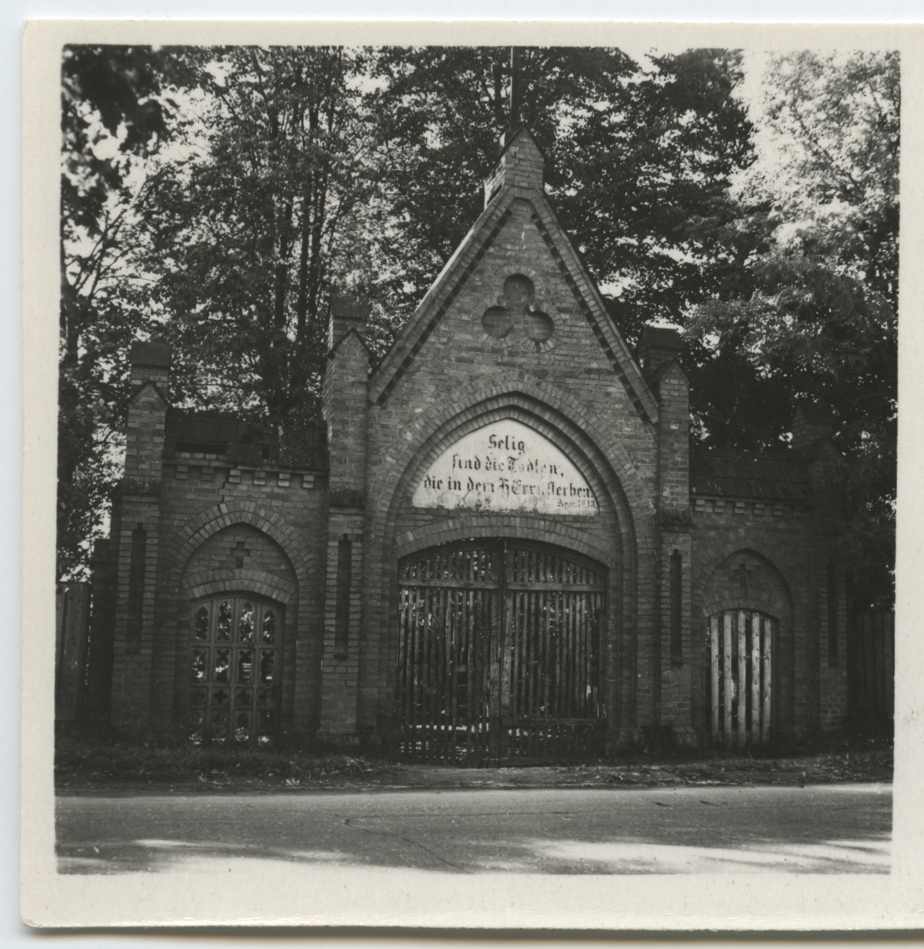 Väraval saksakeelne kiri: "Selig sind die Todten, die in dem Herrn sterben. Apoc. 14,13."